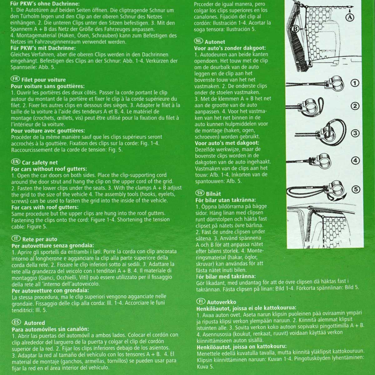 Dieses Autonetz besteht aus Nylon und dient der Sicherheit von Mensch und Tier während der Fahrt. Damit Tiere und Gegenstände auf der Rückbank bzw. Ladefläche oder im Kofferraum bleiben, ist das Autonetz aus starkem Nylon genau das Richtige.
