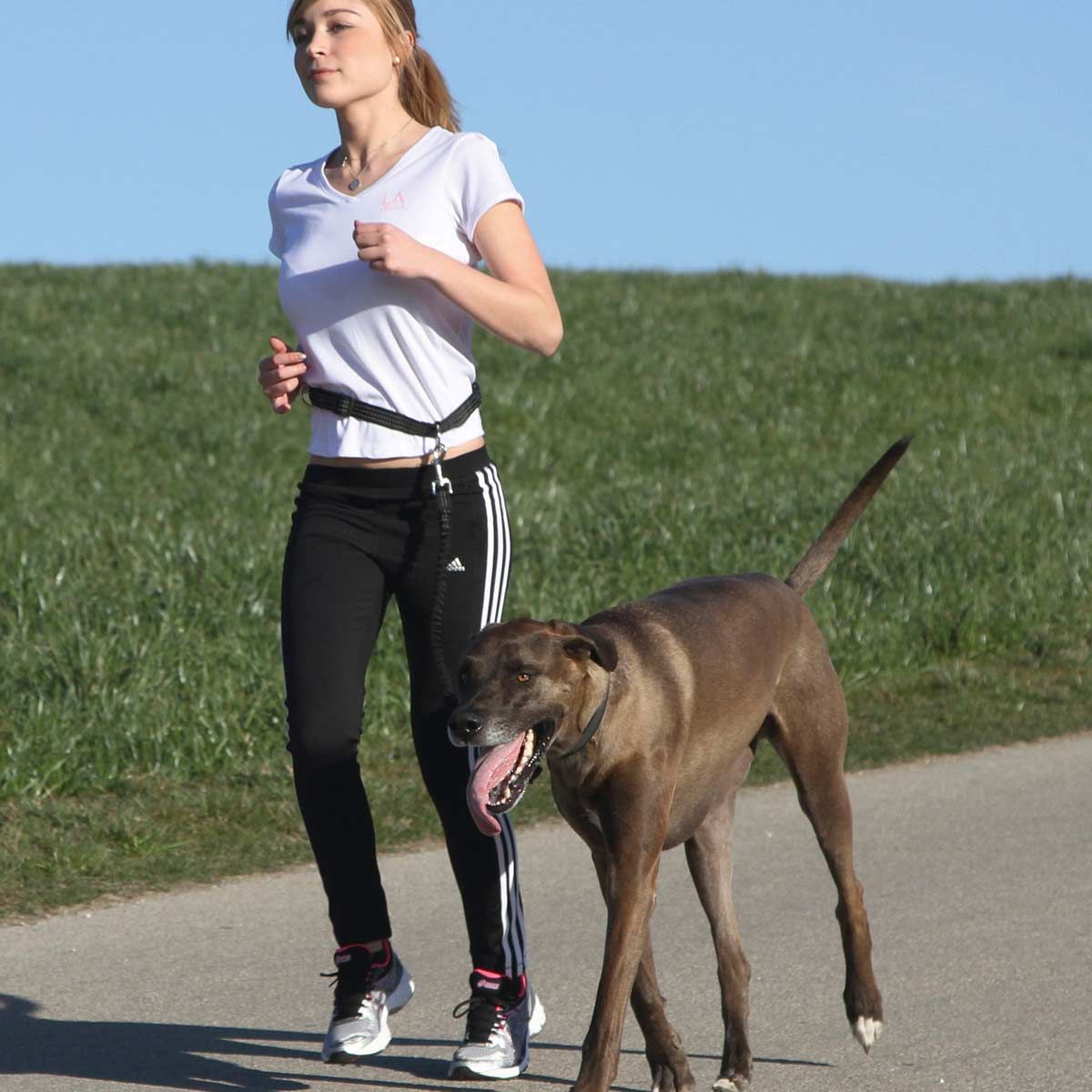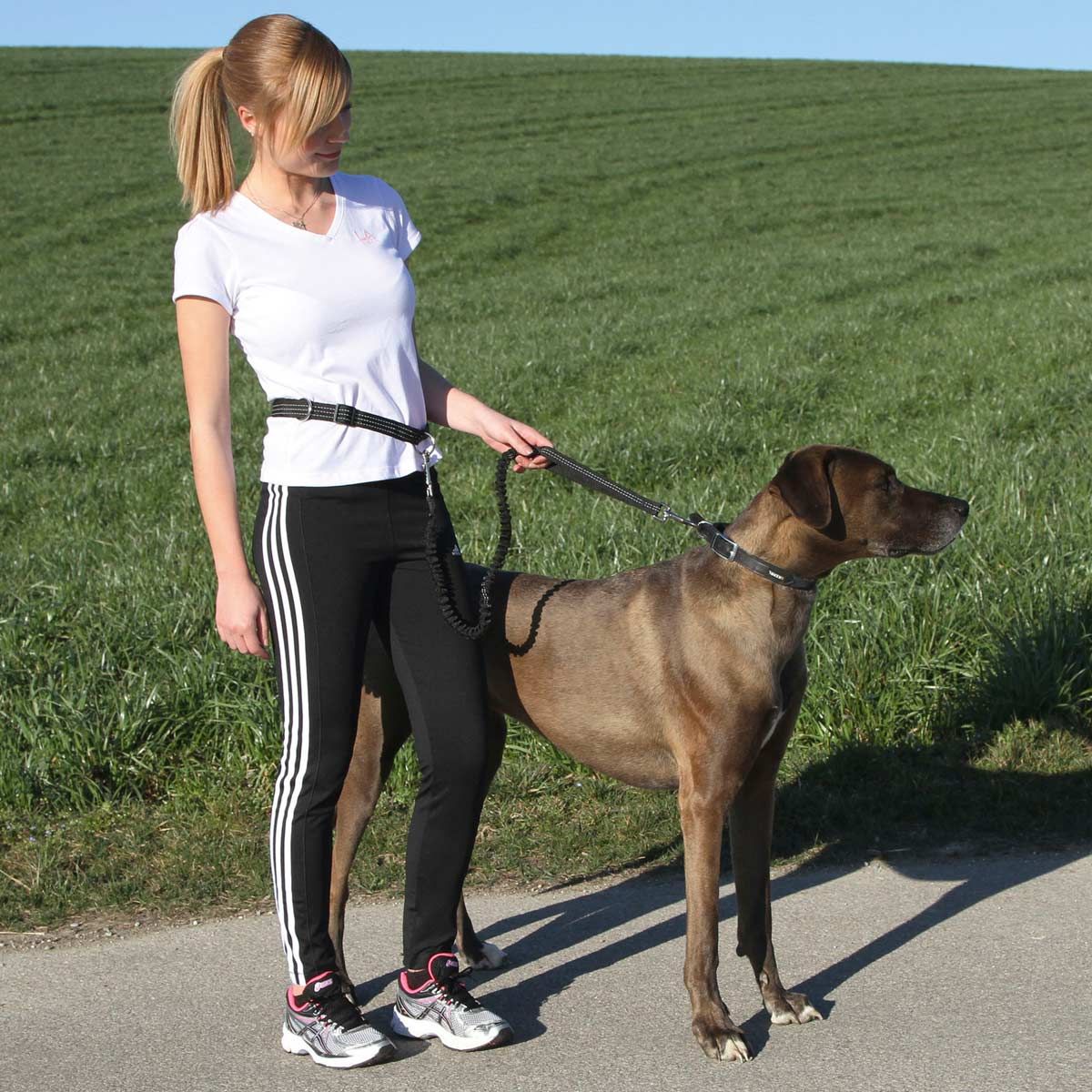 Die Hunde-Joggingleine mit verstellbarem Bauchgurt/Hüftgurt mit felxibler Leine ist ideal für Laufrunden mit dem Hund. Ruckartiges Ziehen durch den Hund wird durch die elastische Joggingleine ausgeglichen. Die Laufleine ist vom Bauchgurt abnehmbar, sodass Sie Ihren Hund auch bequem führen können.