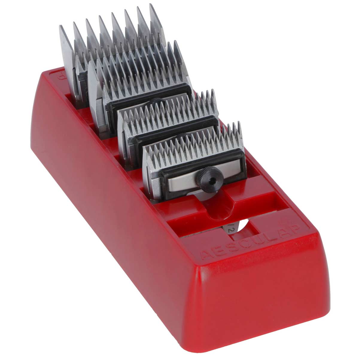 Der Aesculap Scherkopfständer ist ideal, um bis zu 5 Schneidköpfe praktisch und sicher aufzubewahren. Mit dem Kunststoffständer finden Sie immer den richtigen Scherkopf für Ihre Schermaschine. Die Schneidsatzkassette ist aus rotem Kunststoff und passend für alle Aesculap Scherköpfe.
