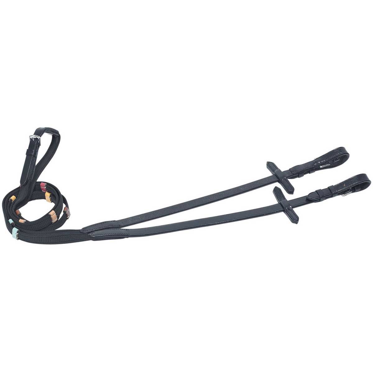 Gummidurchwebter Anti-Slip Gurtzügel mit unterschiedlich farbigen Lederstegen.