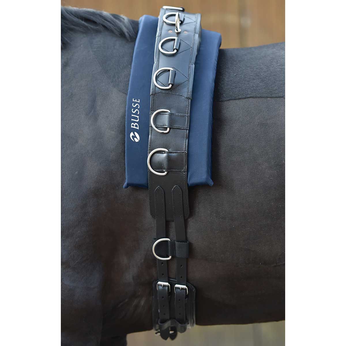BUSSE Longiergurt DOUBLE Sicheres Longieren mit Kindern oder Erwachsenen bei optimalem Körperkontakt ohne Sattel. Stabiler, robuster Longiergurt zum Longieren von Pferden. Mit diesem farbenfrohen Longiergurt kann man dank den 2 lederüberzogenen Handgriffen auch ohne Sattel sicher am Pferd sitzen. Bei Bedarf können auch Steigbügel in den Longiergurt eingeschnallt werden. Mit 8 Ringen flexibel einsetzbar für Hilfszügel und Doppellonge beziehungsweise zum Einfahren. BUSSE Longiergurt Double im Überblick: mit zwei festen, 8 cm hohen, lederüberzogenen Handgriffen aus Canvasmaterial Widerristfreiheit durch große Polster Doppel-Strupfen aus Leder, beidseitig zu gurten über Rollschnallen 6 Ringe zum Befestigen von Hilfszügeln 2 Rechteckringe, in die ggf. auch Steigbügel eingeschnallt werden können Breite: 7,5 cm (Mini-Shetty), 8,5 cm (Shetty, Pony), 11 cm (WB) Farben: schwarz navy/passion pink navy/sky blue Größen: Mini-Shettland (Umfang: 95 -140 cm, Breite: 7,5 cm ) Shettland (Umfang: 115 - 60 cm, Breite: 8,5 cm ) Pony (Umfang: 130 - 195 cm, Breite: 8,5 cm ) Warmblut (Umfang: 165 - 235 cm, Breite: 11 cm ) Lieferumfang: 1x BUSSE Longiergurt Double