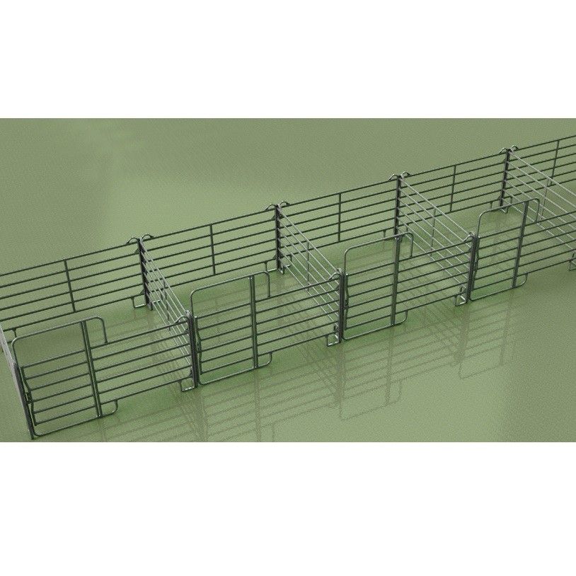 Das Weidepanel ohne Tor eignet sich ideal zum Bau mobiler und flexibler Einzäunungen, sowie von provisorischen Boxen und Stallungen. Es wird auch sehr gerne verwendet für die Einzäunung von Reitzirkeln und Longierplätzen. Der Sicherheits-Aufsprungbügel verhindert Verletzungen der Tiere. Beim Aufspringen auf das Panel kommt das Tier nicht zwischen die Panele. Es hat einen sehr guten und sicheren Stand durch einen U-förmigen Fuß. Der Schnell-Kettenverschluss erleichtert und beschleunigt das Verbinden mehrerer Panele.