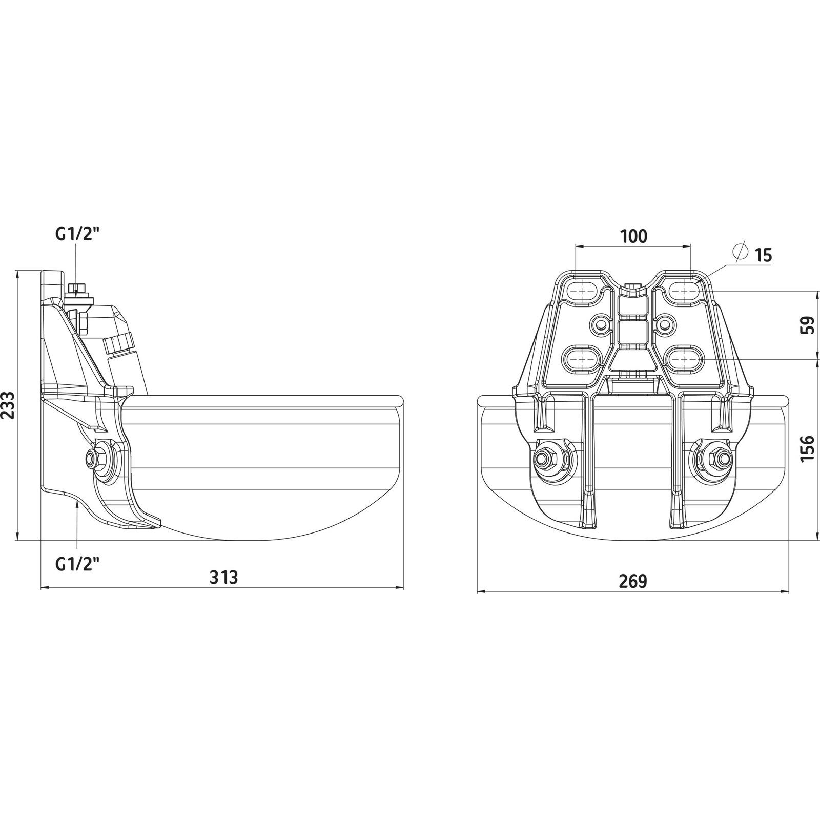 Mit der 4-Punkt-Befestigung kann die Kuh- und Pferdetränke an der Wand oder Rohr befestigt werden (Befestigungsmaterial nicht im Lieferumfang enthalten). Der Wasseranschluss mit dem 1/2"-Anschluss ist von oben und unten möglich.