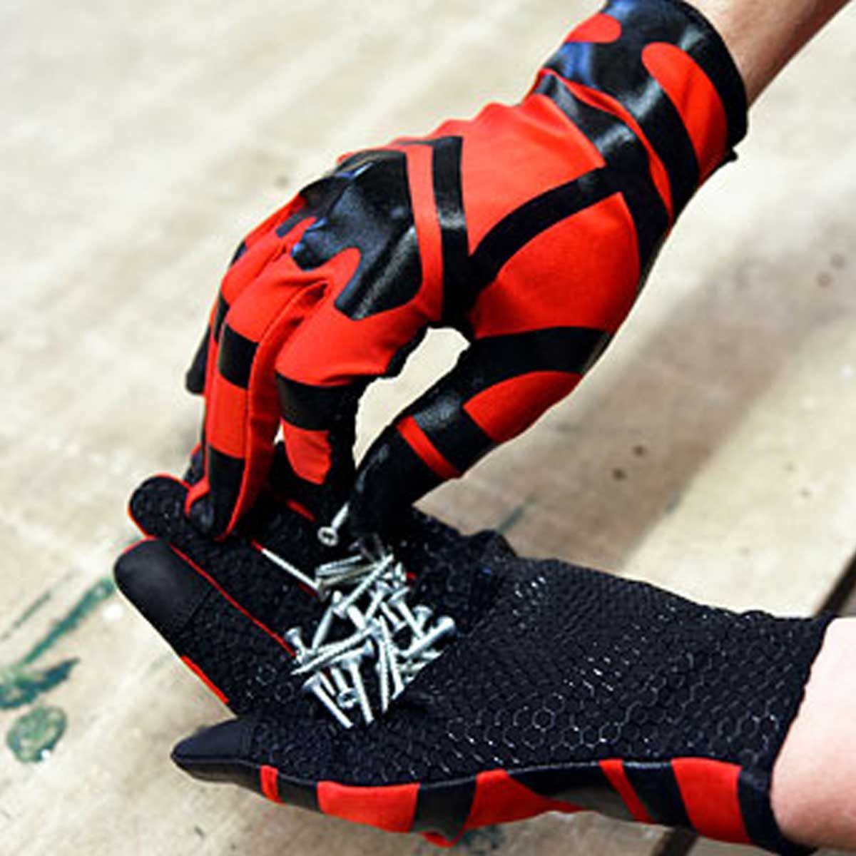 Der Handschuh ist aus 0,5 mm ultra dünnem und dennoch haltbaren Synthetikmaterial gefertigt und bietet perfekte Voraussetzungen für feinfühlige Arbeiten. Der Arbeitshandschuh ist mit voll umspannendem Lycra für vollständige Bewegungsfreiheit und Komfort beschichtet, der Handschuh fühlt sich so wie eine zweite Haut an. Die wabenförmige Matrix aus Silikon an Fingern und Handflächen sorgt für einen optimalen Griff und exponierte Stellen am Handrücken sind mit Silikon verstärkt. Ein besonderes Highlight sind die leitende Fingerspitzen zur Benutzung von Touchscreens.