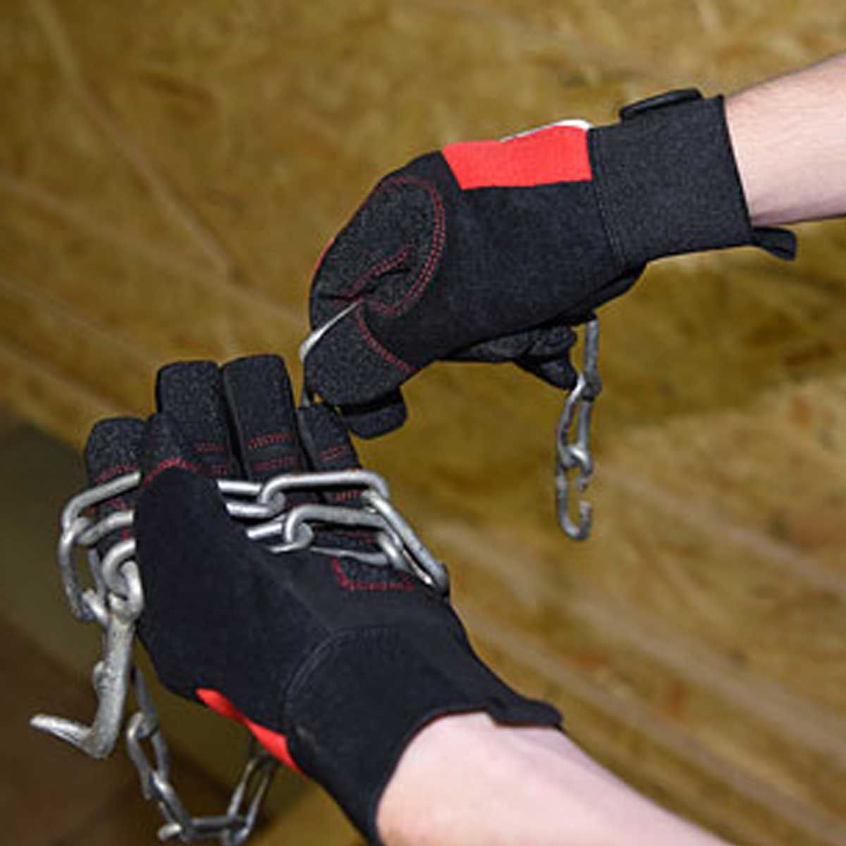 - Mit PVC doppelt verstärkte, angeraute Hand- und Fingerflächen für hervorragende Haltbarkeit und Griff, auch zum Arbeiten mit Seilen geeignet