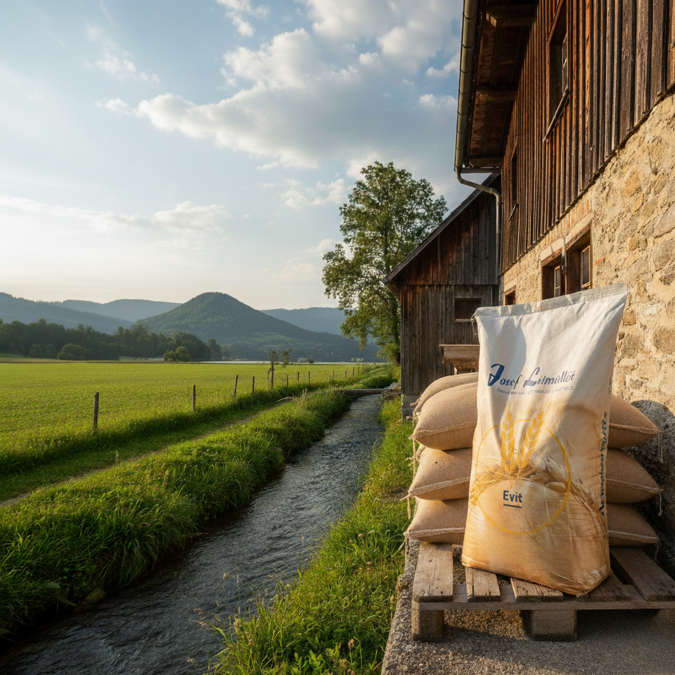 Das Spezialfutter wird sorgfältig in Österreich von dem Familienunternehmen Leimüller produziert, ist mehrfach gereinigt und sorgsam in robusten, umweltfreundlichen Futtersäcken abgefüllt. Bei diesem Ganzjahresfutter können Sie sich sicher sein, dass nur beste Rohstoffe aus der Region verwendet werden.