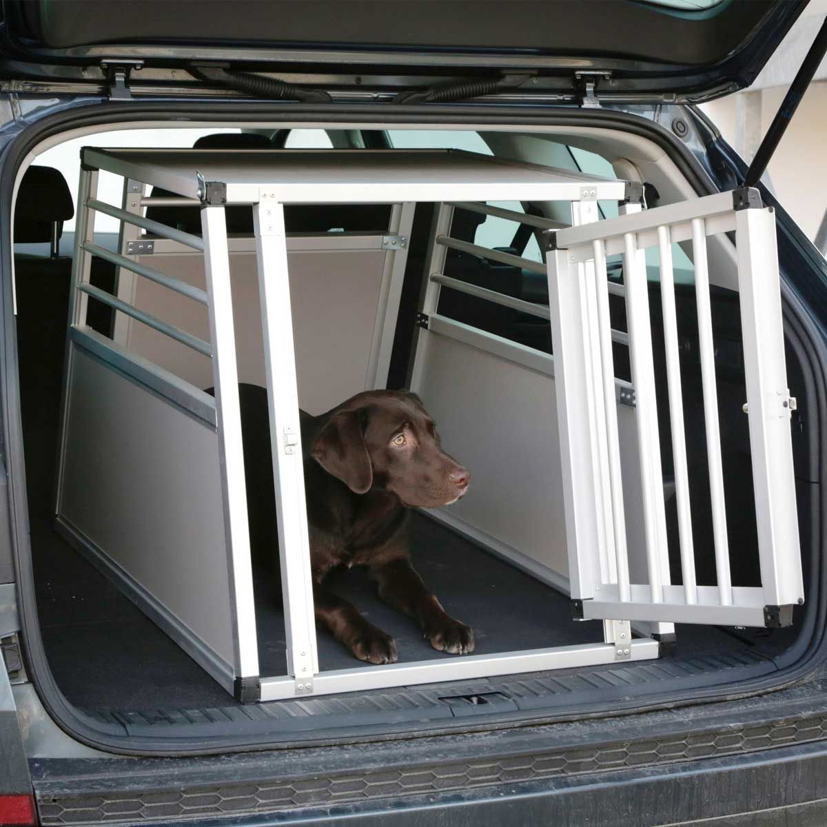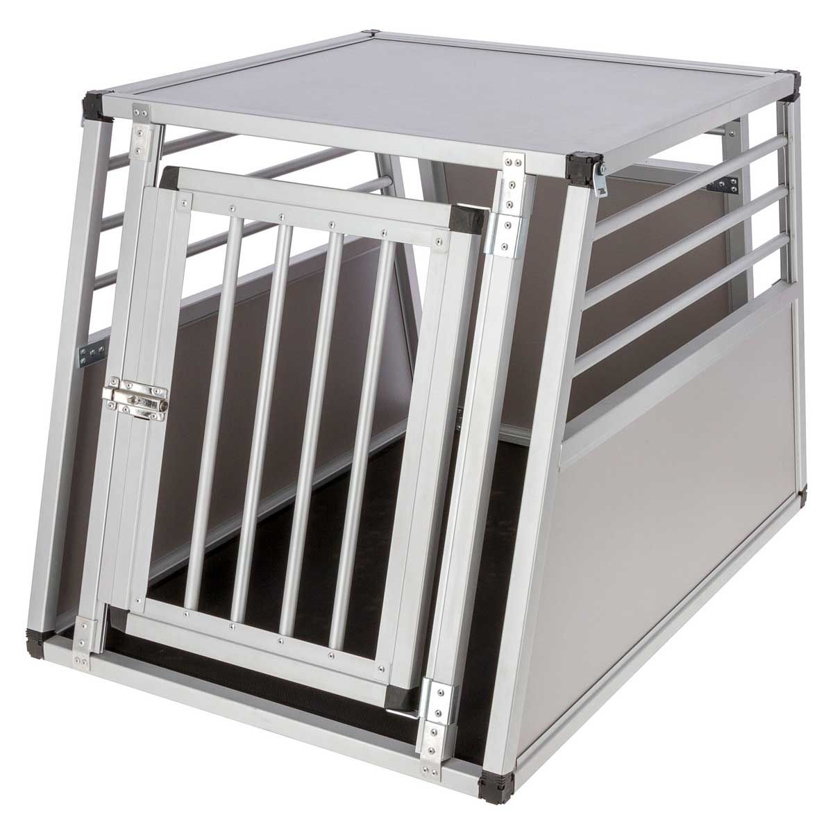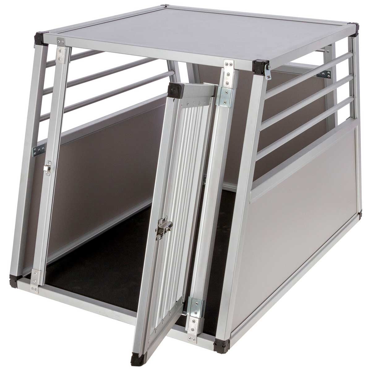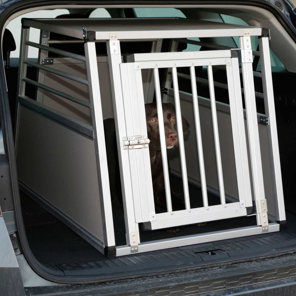 Die Hundetransportbox wurde aus Aluminium und als stabile und sichere Ausführung kontstruiert. Die abgeschrägte Vorder- und Rückseite ermöglicht eine optimale Platzausnutzung im Kofferraum. Die erhöhten Wände aus Hartfaserplatten sorgen für mehr Sicherheit und Sauberkeit.