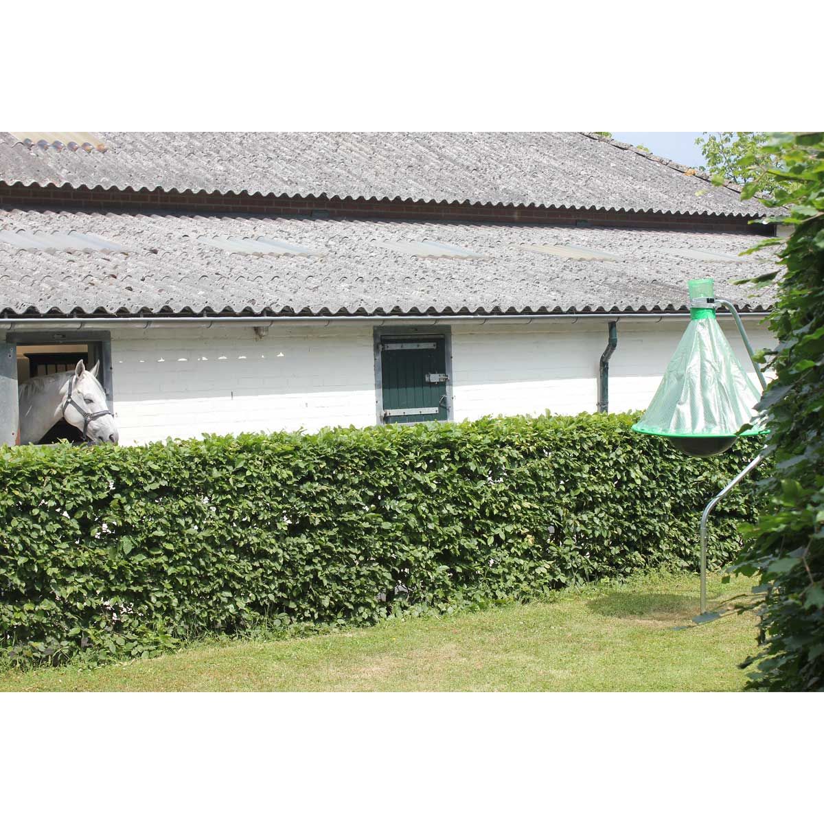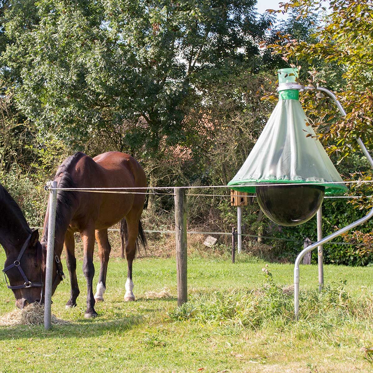 Mit der hochwirksamen Bremsenfalle H-Trap schützen Sie sich und Ihre Tiere vor den aggressiven Bremsen. Die Falle wird im Außenbereich aufgestellt: Das sollte idealerweise dort sein, wo die Insekten verstärkt auftauchen - meist in der Nähe von Gewässern. Es kommen keine chemischen Lockstoffe oder Köder zum Einsatz.