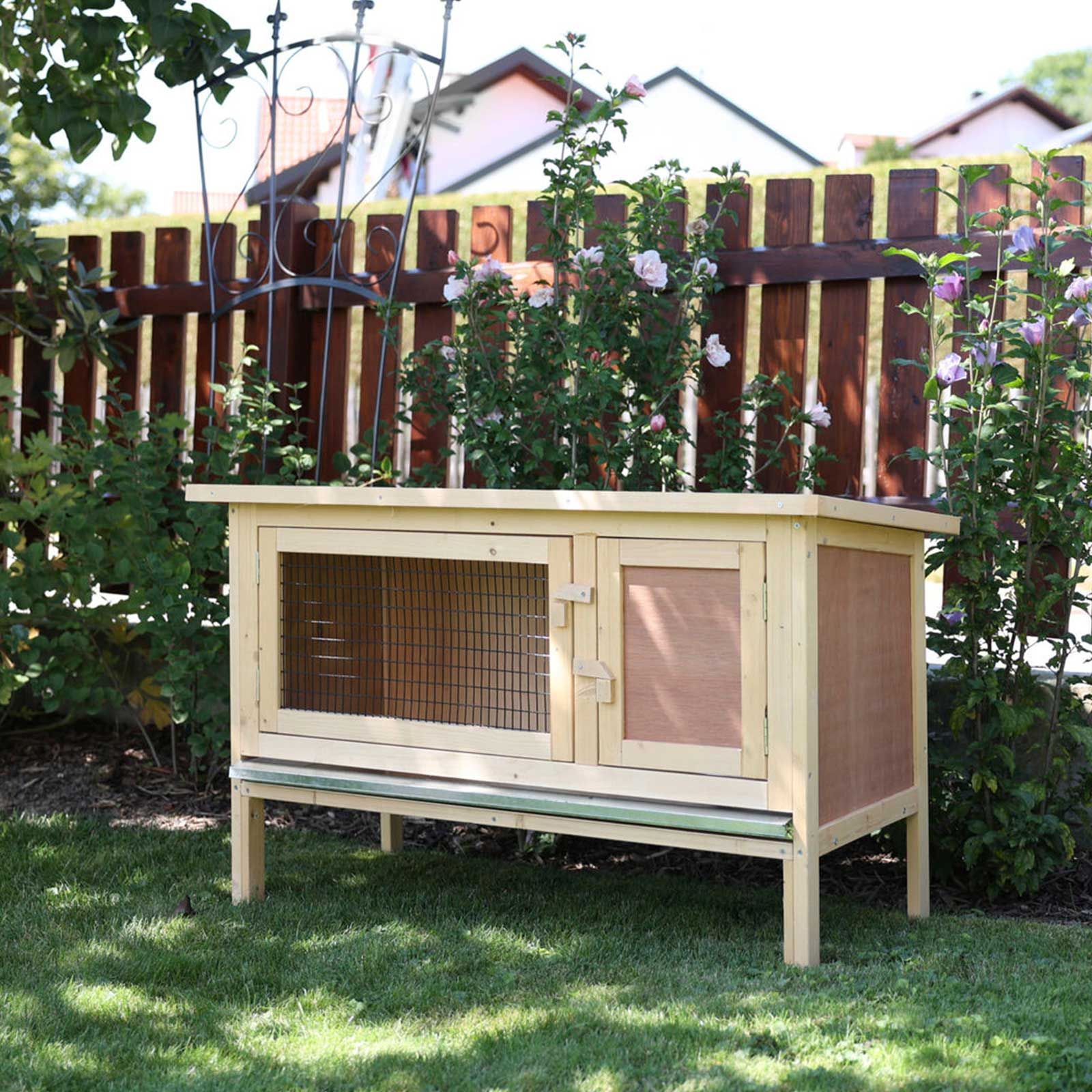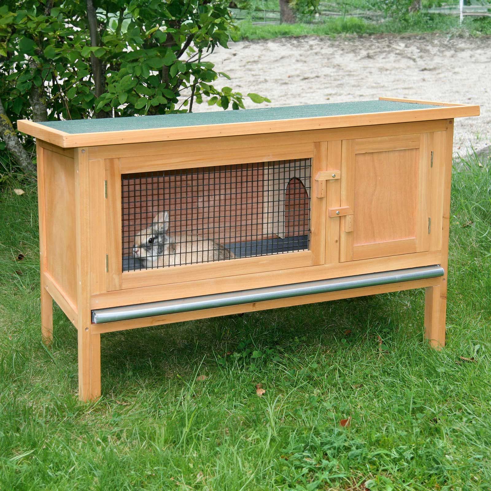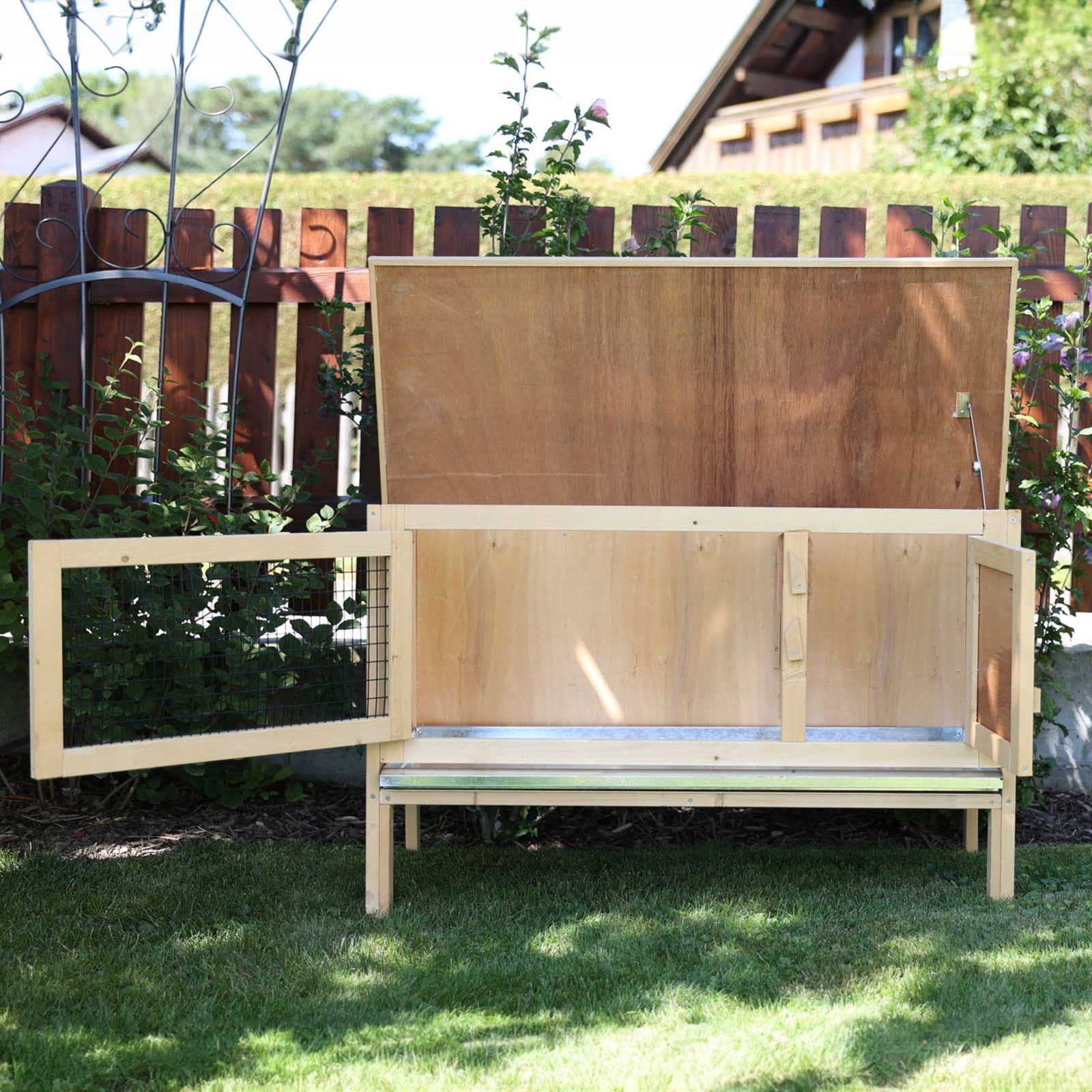 Dieses schöne Nagerhäuschen hat eine Front mit einem hochwertigen Gitter, ein praktisches aufklappbares Bitumendach mit Dachfixierung und Kunststofffüße. Die verzinkte Wanne lässt sich einfach rausnehmen und erleichtert somit die Reinigung. Der Durchschlupf zum Ruheraum ermöglicht Ihrem Nager einen gemütlichen Raum zum zurückziehen. Der Stall hat insgesamt 2 Türen die getrennt voneinander zu öffnen sind.