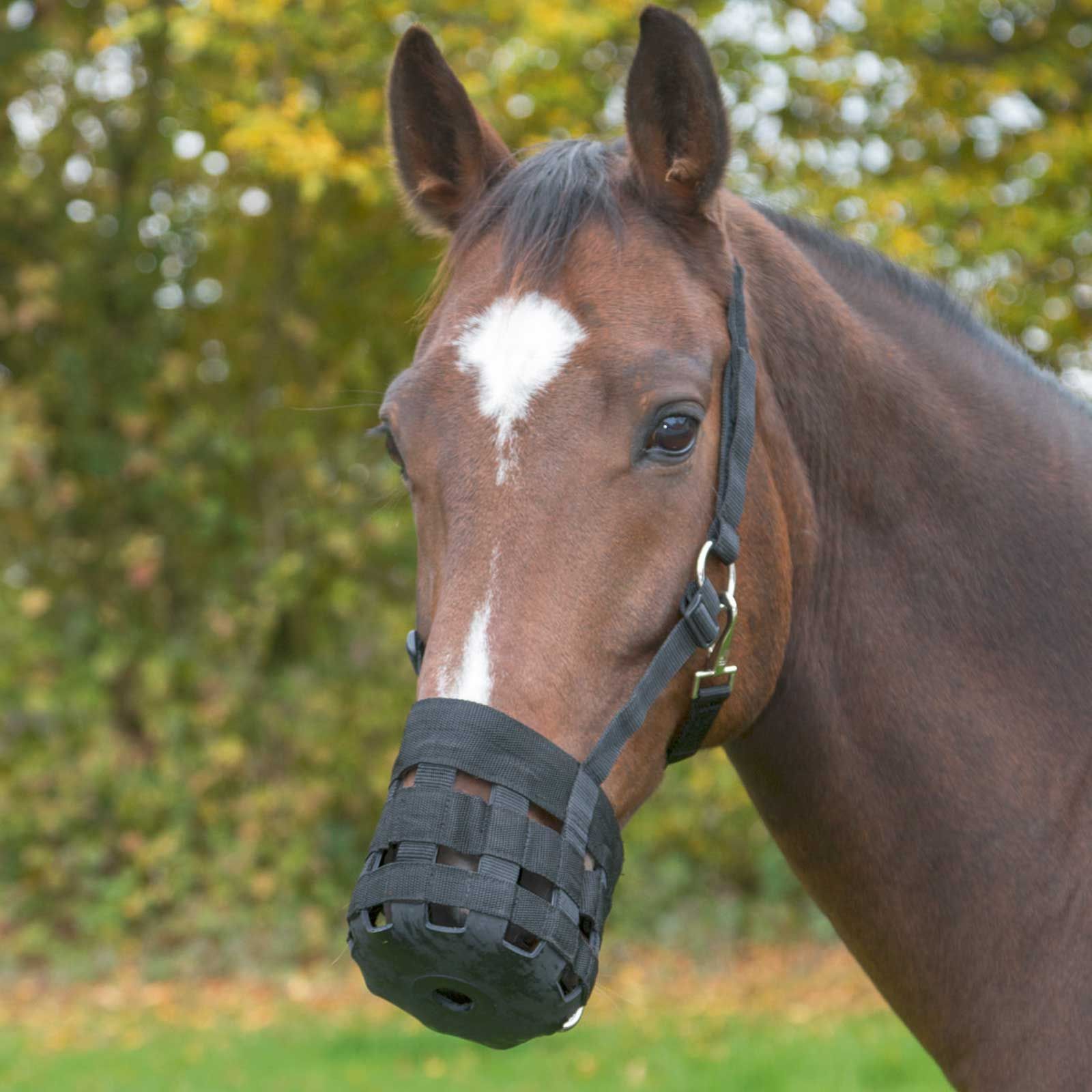 Dieser Maulkorb mit integriertem Halfter hindert Ihr Pferd vor zu hastigem Fressen auf der Weide und ist einfach anzubringen. Der Maulbereich ist extra verstärkt.