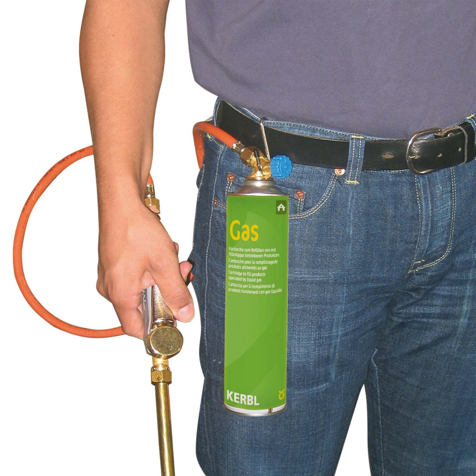 Die passende Gaskartusche 600 ml ist seperat zu bestellen. Der Inhalt reicht für ca. 2-3 Betriebsstunden (je nach Verbrauch). Durch die mitgelieferte Gürtelhalterung ist die Anwendung mit der Gaskartusche einfach und zeitsparend.