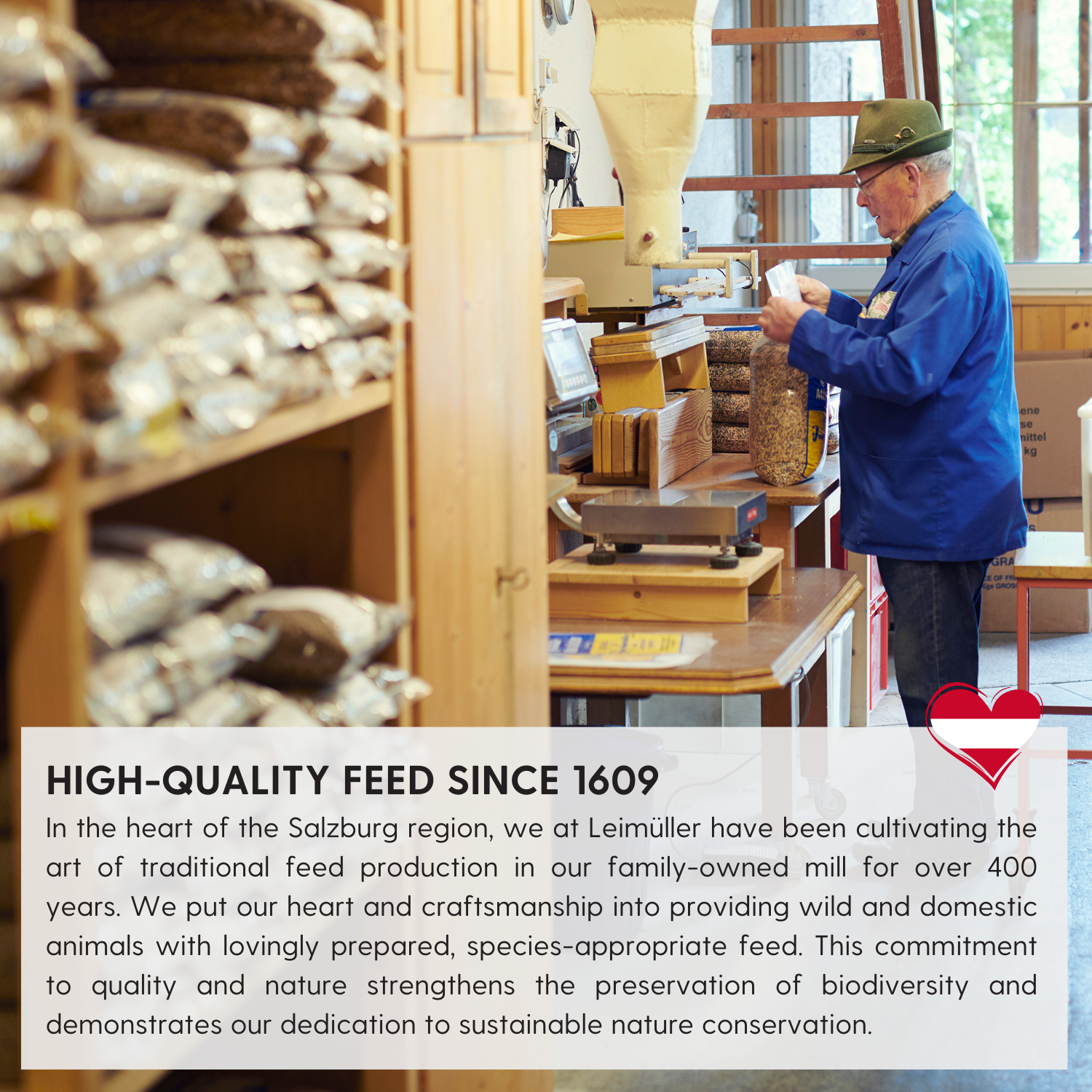 Vertraue auf die über 400-jährige Tradition und Expertise von Leimüller, dem österreichischen Hersteller hochwertiger, gentechnikfreier Futtermittel für Heim-, Nutz- und Wildtiere. Leimüller legt besonderen Wert auf strenge Qualitätskontrollen und verwendet ausschließlich sorgfältig ausgewählte Rohstoffe, die überwiegend von heimischen Bauern stammen. Die Kombination aus regionalen Zutaten und moderner Verarbeitung sorgt für nährstoffreiche und schonende Futtermittel, die die Gesundheit und Vitalität Deiner Tiere unterstützen. Entdecke die breite Produktpalette bei Agrarzone und gib Deinen Tieren das Beste – mit Leimüller.