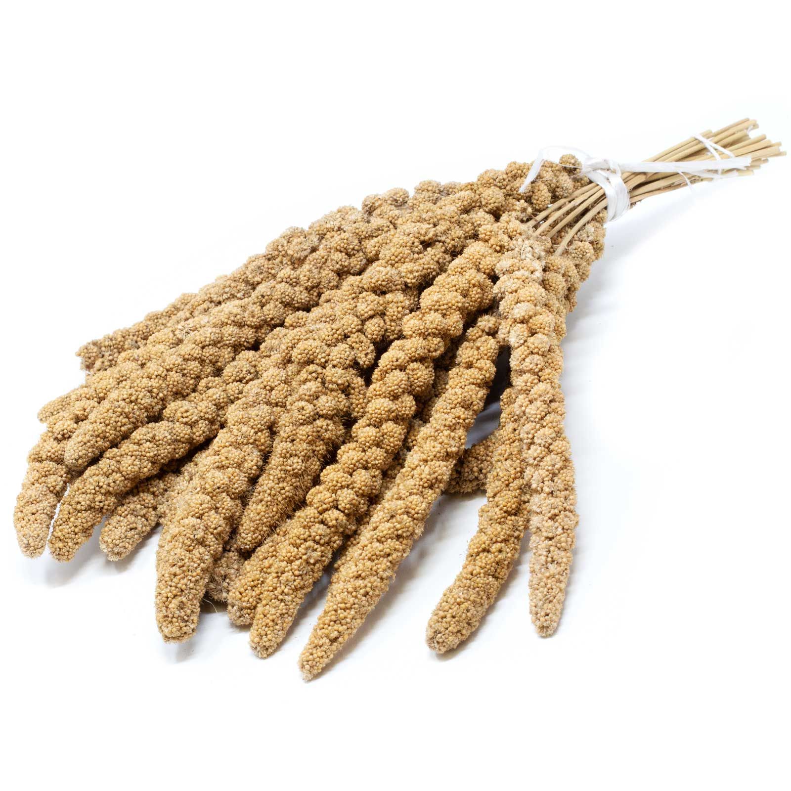 Kolbenhirse sind auch unter dem Namen Fuchsschwanzhirse, Besenhirse, Fennich, Mohar, Vogelhirse, Deutsche Hirse, Italienische Hirse, Ungarische Hirse, Navane und Kangni bekannt. Die gesunden Leckerli für Vögel zeichnen sich dadurch aus, dass sie nur sehr wenig Fett enthalten, nämlich nur 4 g auf 100 g Hirse. Damit sind sie ein viel kalorienärmerer Snack als fettreiche Sonnenblumenkerne, die es auf 50 g Fett pro 100 g Kerne bringen.