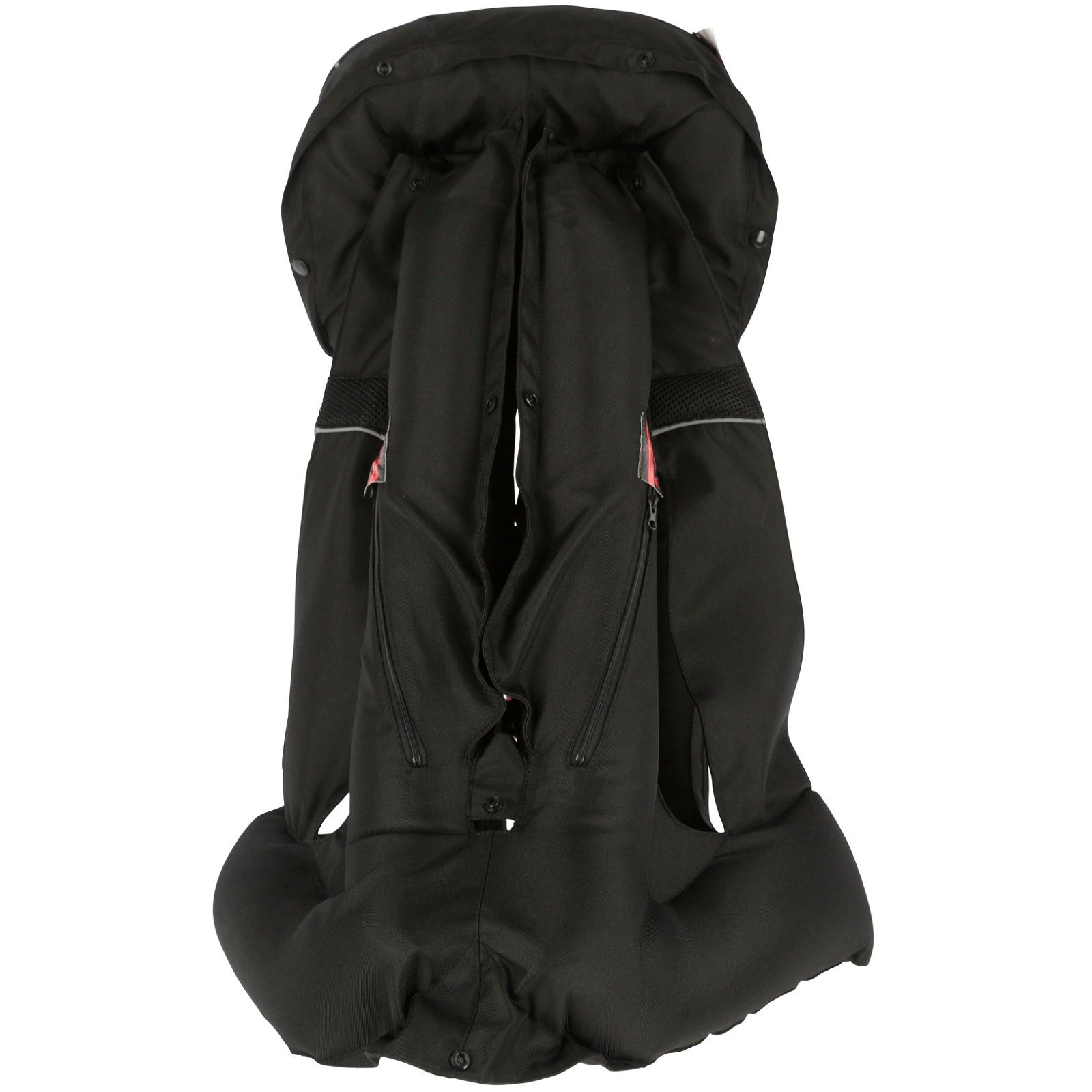 - die Weste bildet einen Airbag rund um den Oberkörper und umhüllt so Brust und Hüfte, aber vor allem auch Rücken und Wirbelsäule