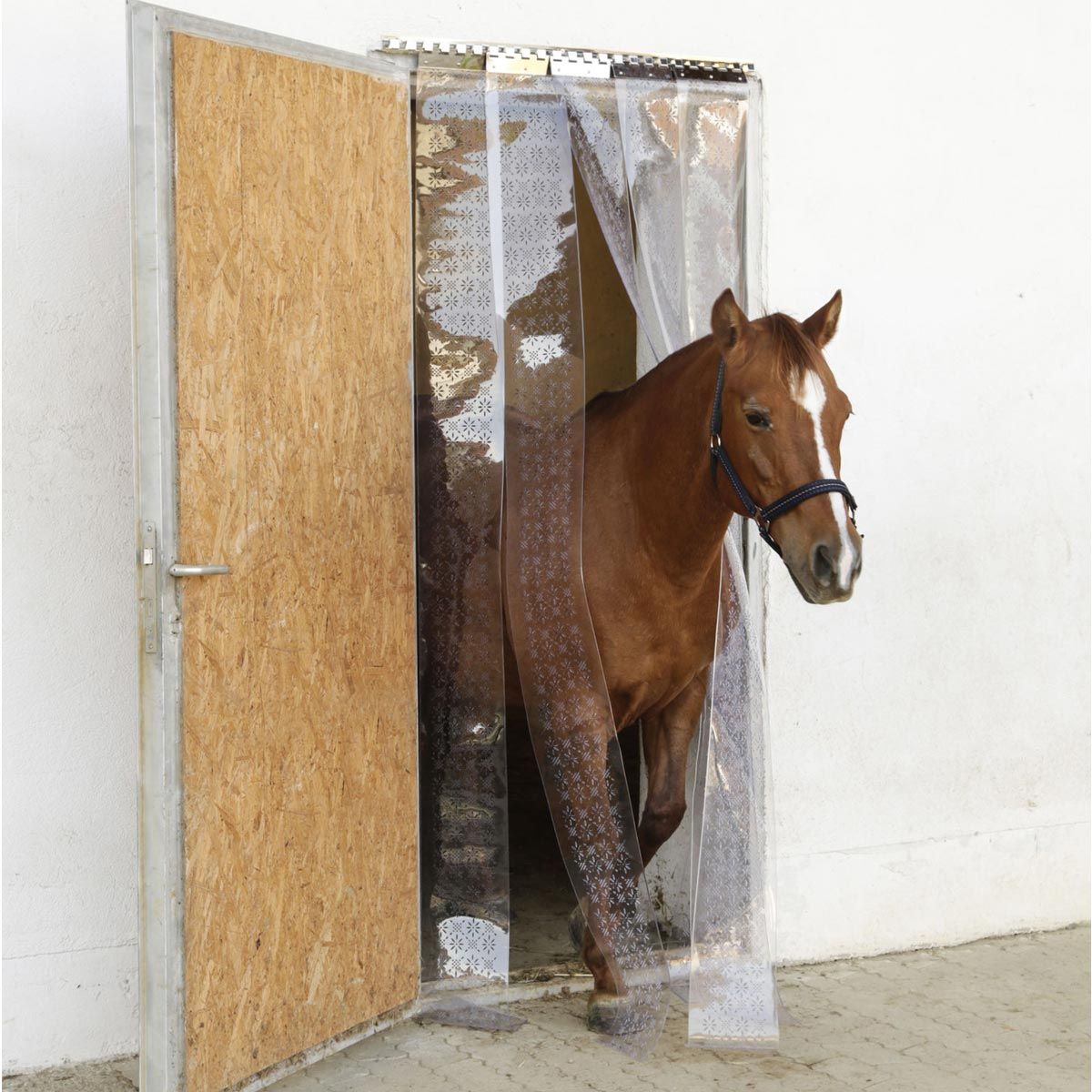 Dieser luftige Streifenvorhang hilft, Insekten aus den Ställen fernzuhalten. Der Streifenvorhang ist als Komplett-Set, sowie als einzelne Ersatzstreifen verfügbar.