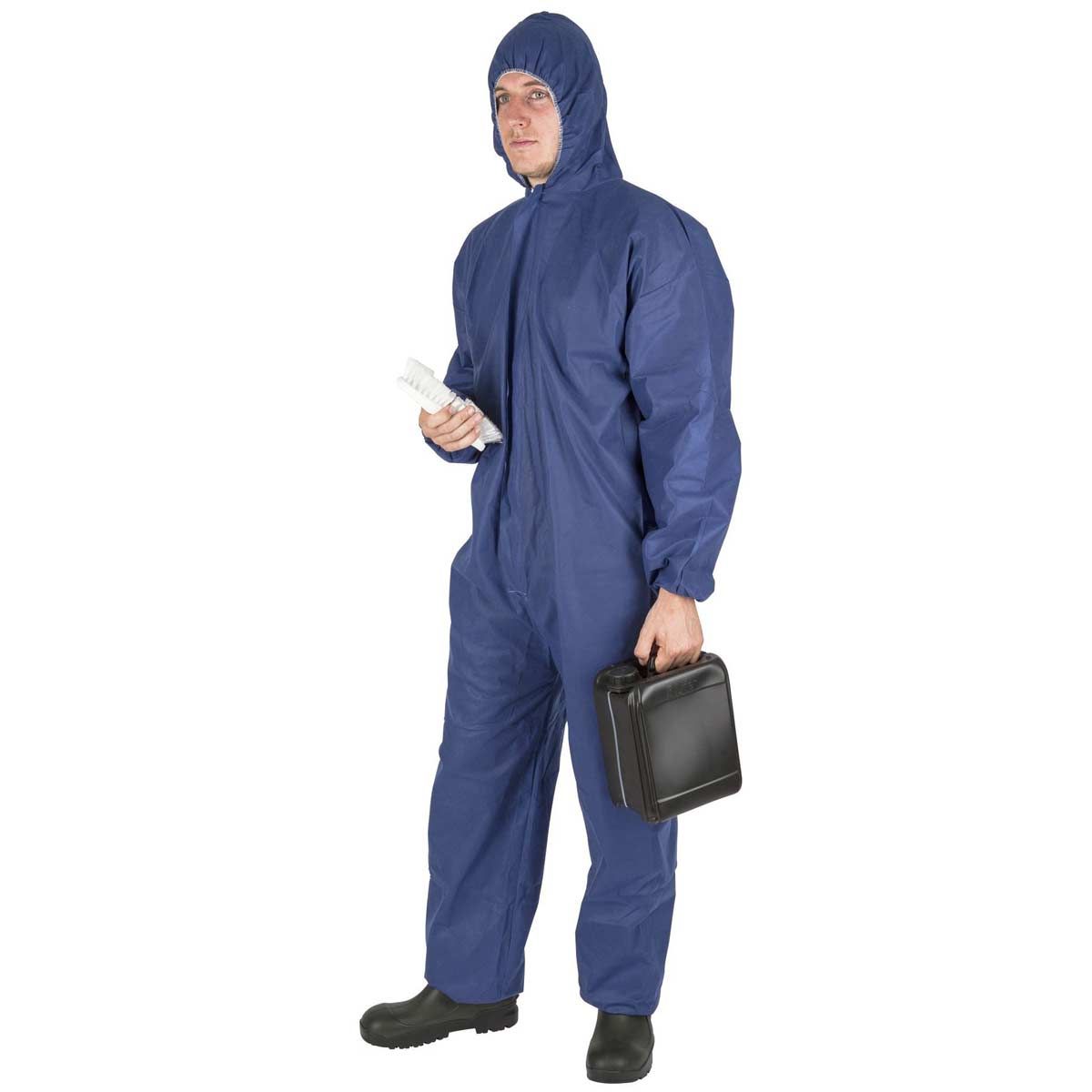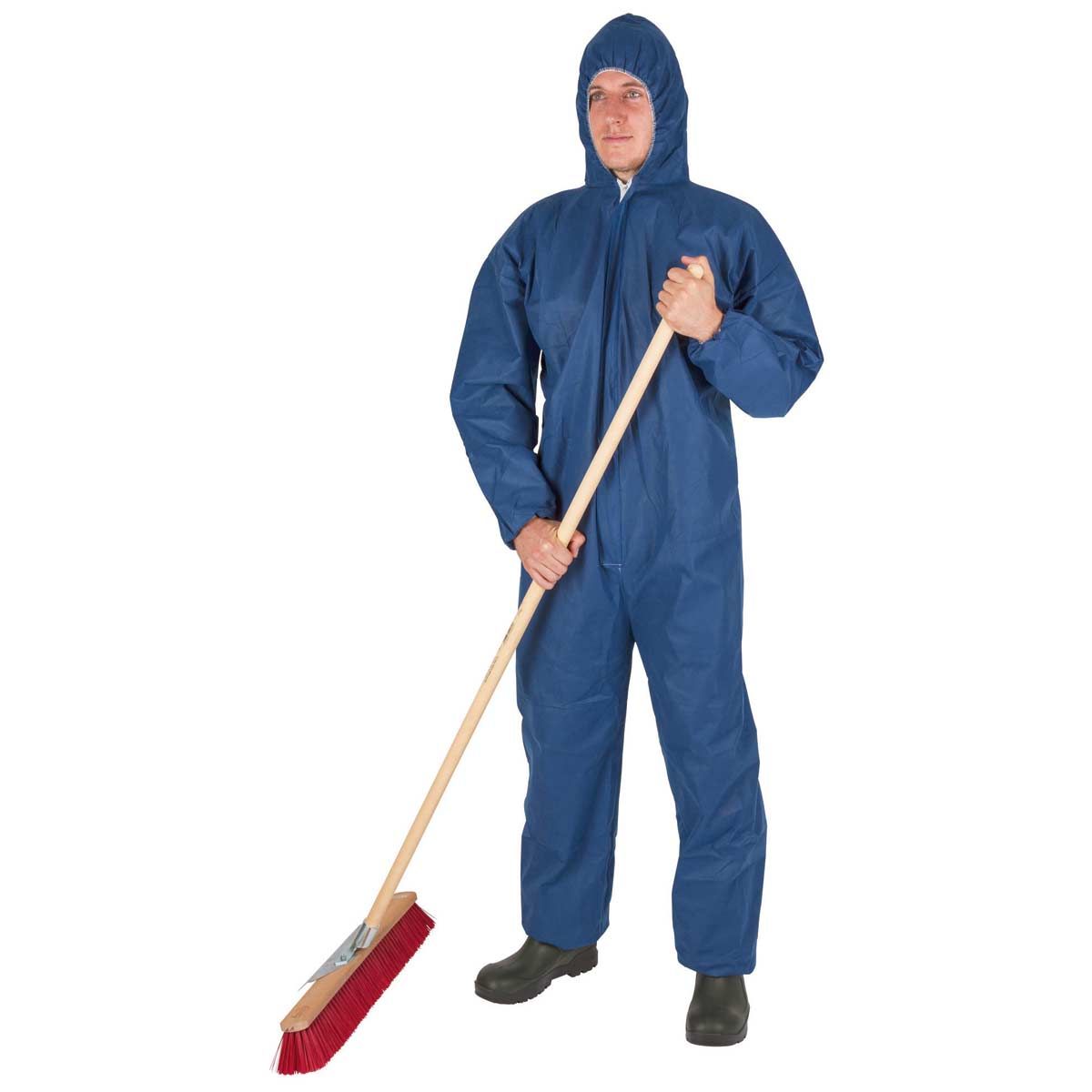 Der Einwegoverall blau dient zum Schutz vor Staub, Schmutz und Spritzern.