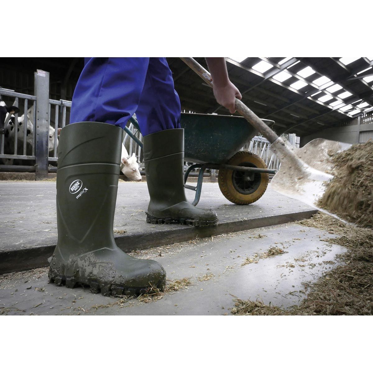 Der robuste StepliteX SolidGrip (StepliteX) Arbeitsstiefel mit breitem Schaft wurde speziell für die Landwirtschaft entwickelt. Das Modell garantiert ausgezeichnete Haftung, selbst auf den glattesten Oberflächen (SRC-zertifiziert) und bietet Isolierschutz bis -30 °C. Dank der besonders hohen Stahlkappe sind Sie bei Ihrer Arbeit zwischen Tieren und mit den unterschiedlichsten schweren oder spitzen Arbeitsgeräten gut geschützt. Zum Lieferumfang dieser Modelle gehört auch ein kostenloses Paar feuchtigkeitsabsorbierender Fußbetten. So bleiben Ihre Füße immer trocken.