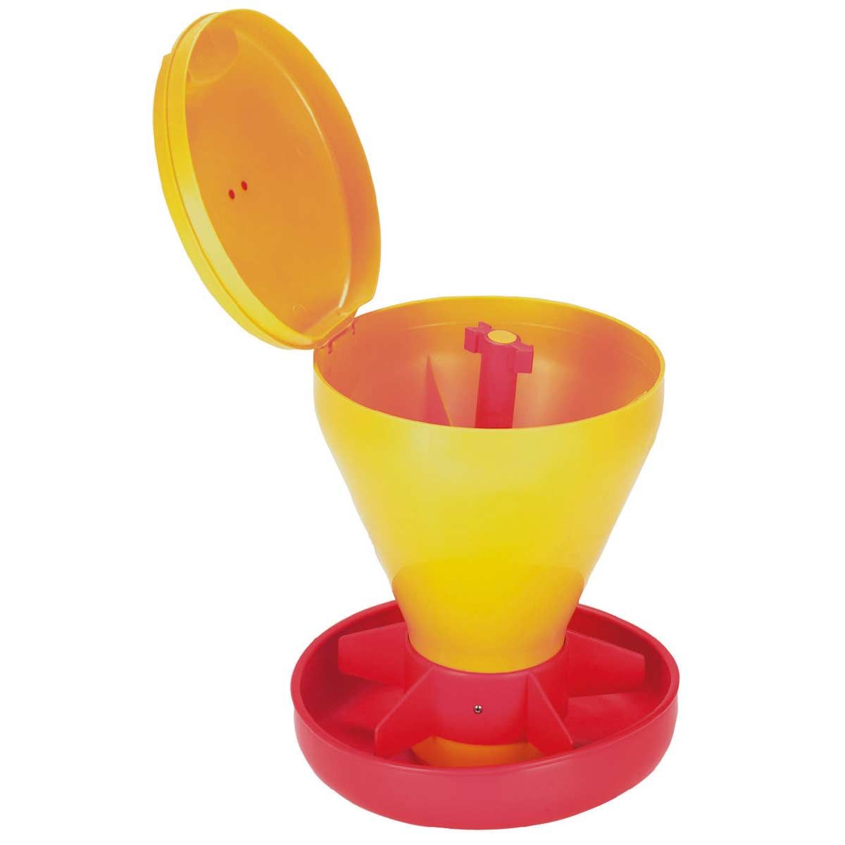 Ferkelschale mit Deckel. Der Deckel dieser Futterschale schließt hermetisch ab und kann somit vom Ferkel selbst nicht geöffnet werden. Die abgerundete Kanten verhindern Futterverschwendung und vermindern die Verletzungsgefahr.