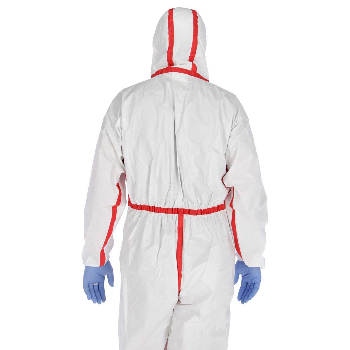 • Aus Spinnvlies-Polyethylen-Laminat, d.h. das innenliegende Spinnvlies ermöglicht ein angenehmes Tragegefühl, außen sprühdichtes Polyethylen