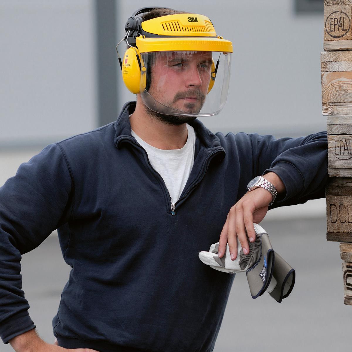 Die Kopfhalterung G500 ist der perfekte Begleiter in der Land- und Forstwirtschaft, wenn Gesicht und Ohren geschützt werden müssen, aber kein Helm benötigt wird.
