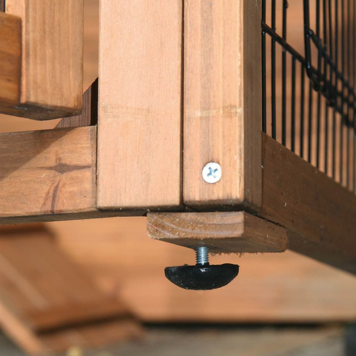 - 2 Holzsitzstangen im Gehege mit kunststoffbeschichtetem Kotbrett
