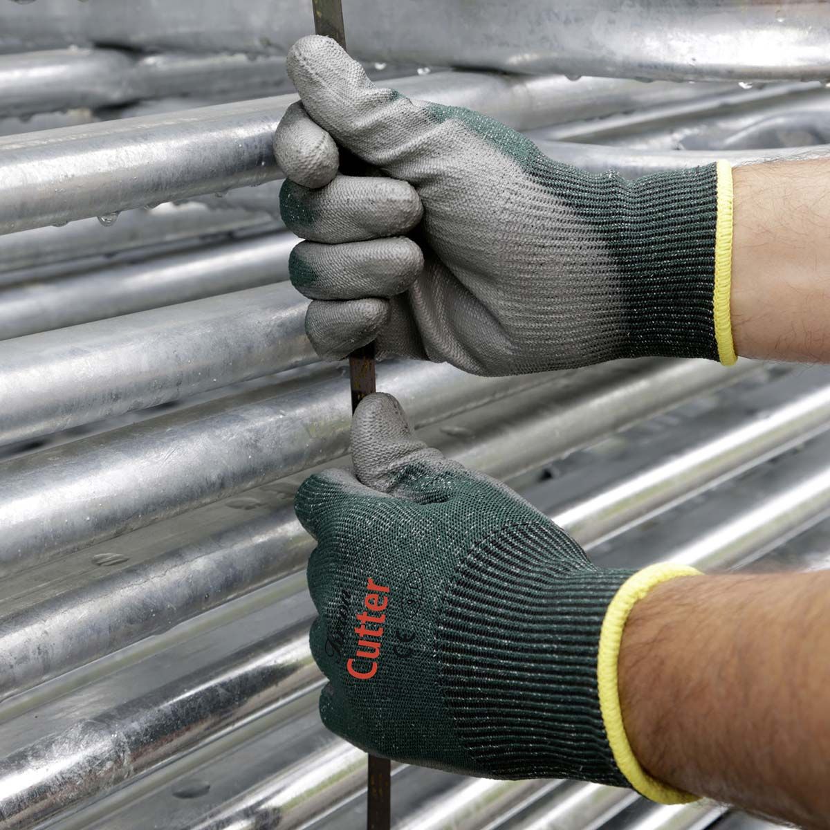 Der Handschuh Cutter ist ein Schnittschutzhandschuh (15 Gauge) aus schnittfester Glasfaser, wegen verbesserter Elastizität gemischt mit Spandex und Polyester.