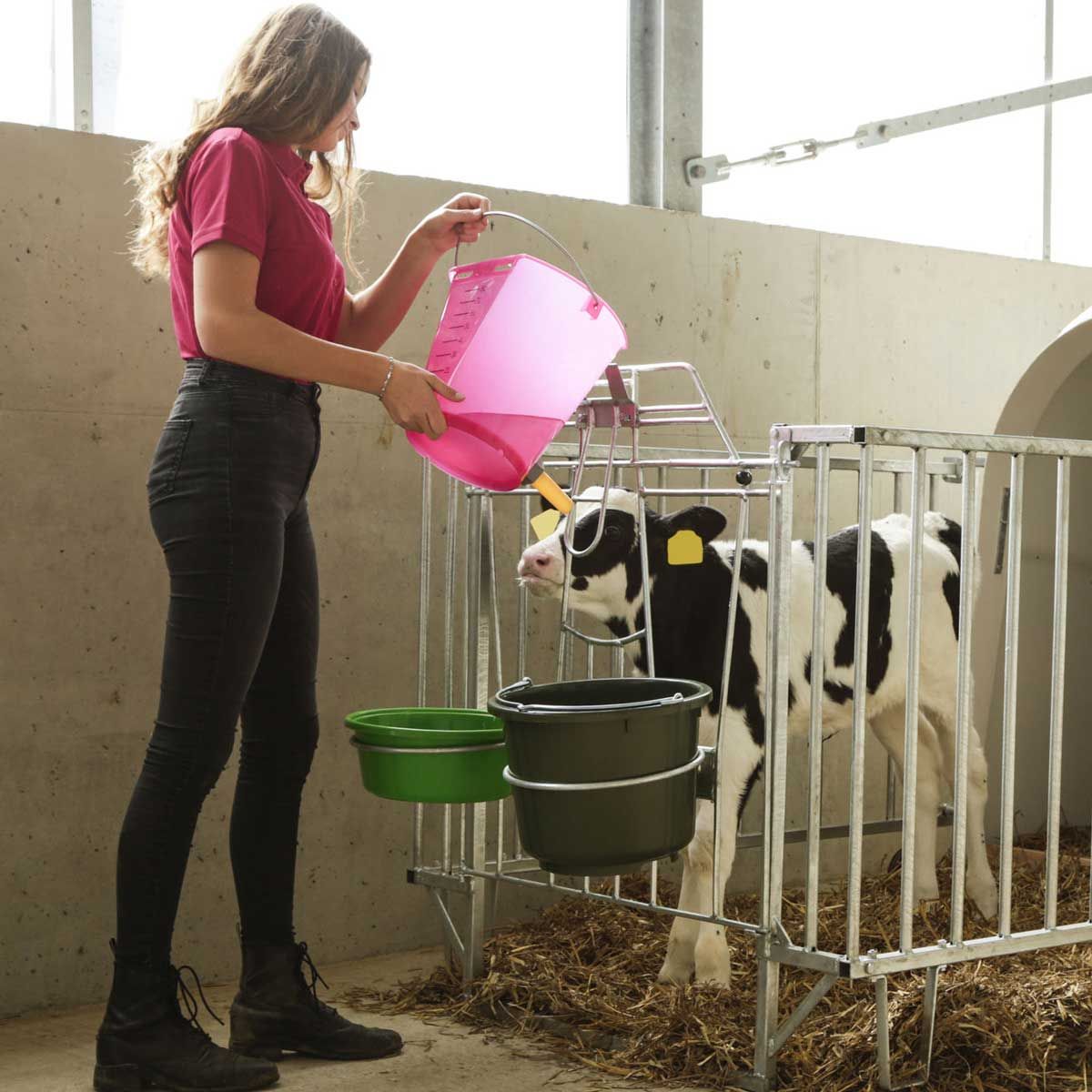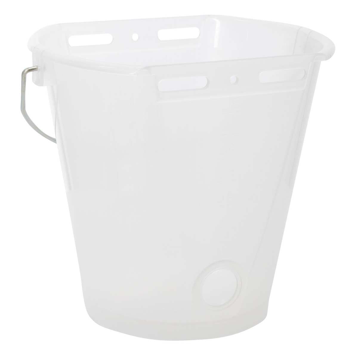 Dieser Tränkeeimer ist in verschiedenen transparenten Farben erhältlich (weiß, gelb, rosa, blau).