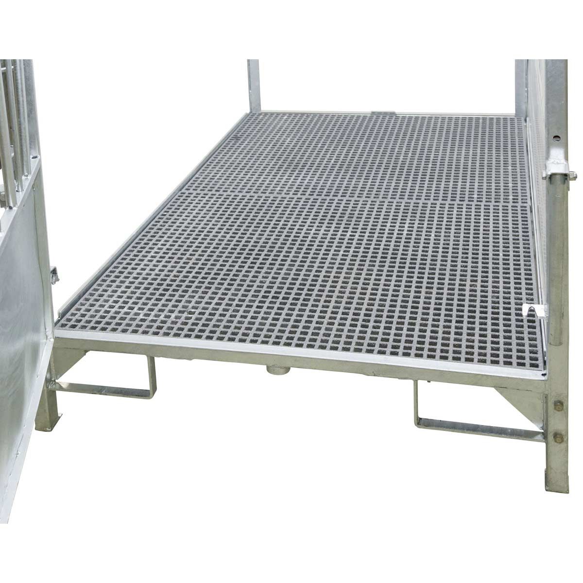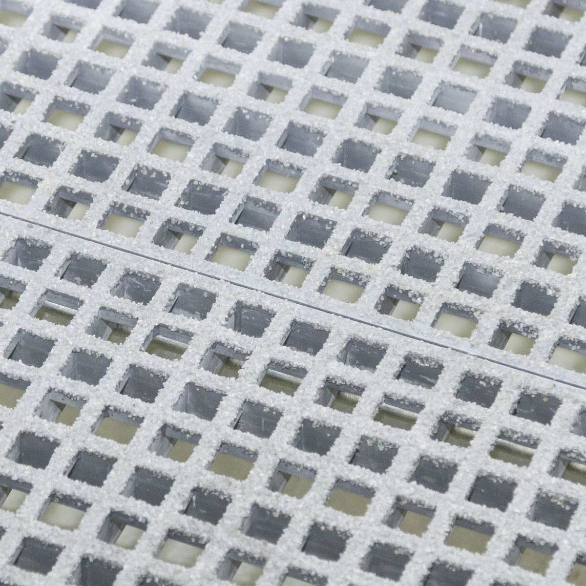 - Extrem griffiger und rutschsicherer GFK-Bodenrost (zweiteilig)