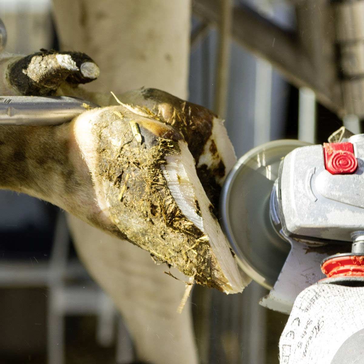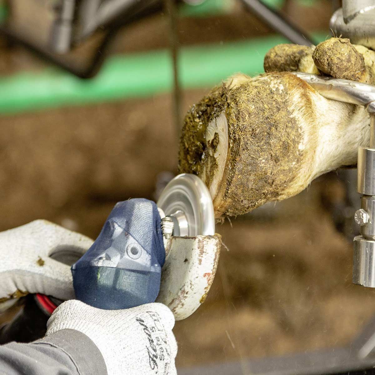 Bei dieser Klauenschneidscheibe sorgt der Grundkörper der Scheibe aus Aluminium für leichte Handhabung.
