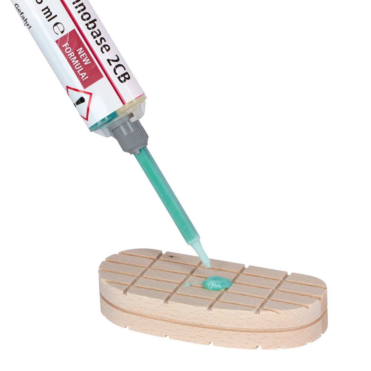 Als ultimative Zweikomponentenkleber ist Technobase 2CB New Formula in der professionellen Anwendung bei der modernen Klauenpflege nicht m,ehr weg zu denken. Die Blaufärbung zeigt sofort beim Auspressen die korrekte Mischung an. Die neue Rezeptur wurde in den Parametern Aushärtegeschwindigkeit, Viskosität und Härtegrad nach Polymerisation im Vergleich zu den marktüblichen Zweikomponentenklebern optimiert.