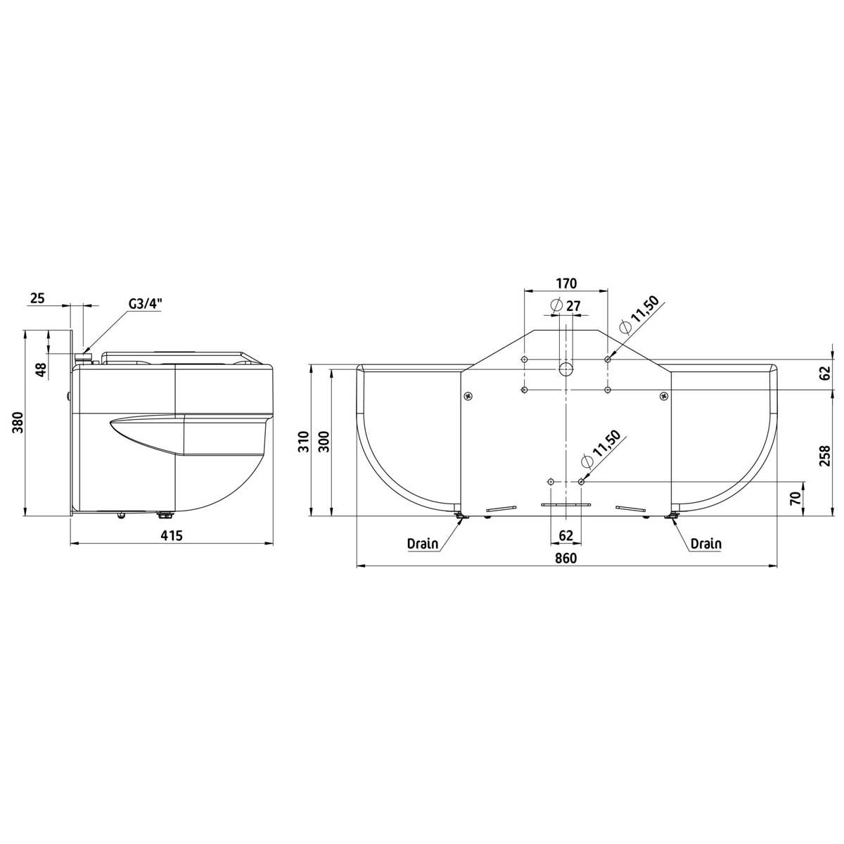 Doppel-Schwimmertränkebecken S60 Rohr-/Wandmontage