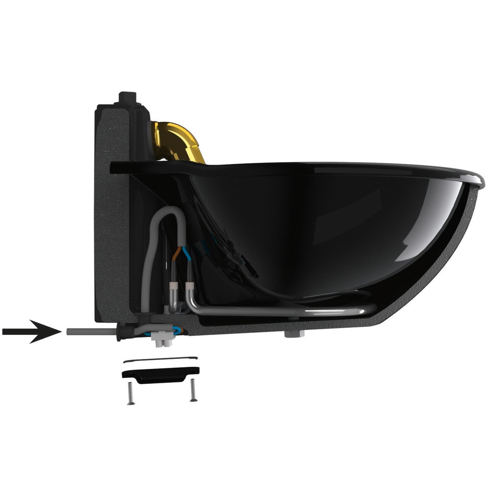 Die frostsichere Tränke kann an Rohren und an der Wand montiert werden und kann von unten oder oben mit einem G1/2" Innengewinde angeschlossen werden. Die Stromversorgung ist über einen Transformator mit mindenstens 100 W (nicht im Lieferumfang enthalten!) und einem Stromanschluss durch den außen liegenden Klemmkasten gewährleistet. Das beheizbare Tränkebecken ist für Umlaufheizsysteme geeignet. Der Wasserdurchfluss lässt sich einfach durch das Rohrventil regulieren.