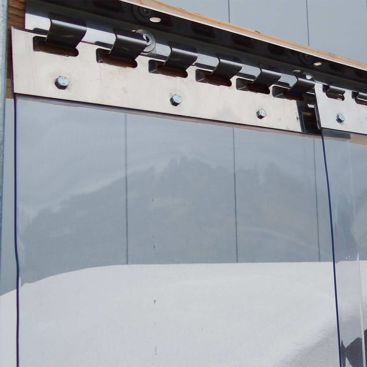Die Hakenleiste ist zur Befestigung von PVC-Streifenvorhängen geeignet.