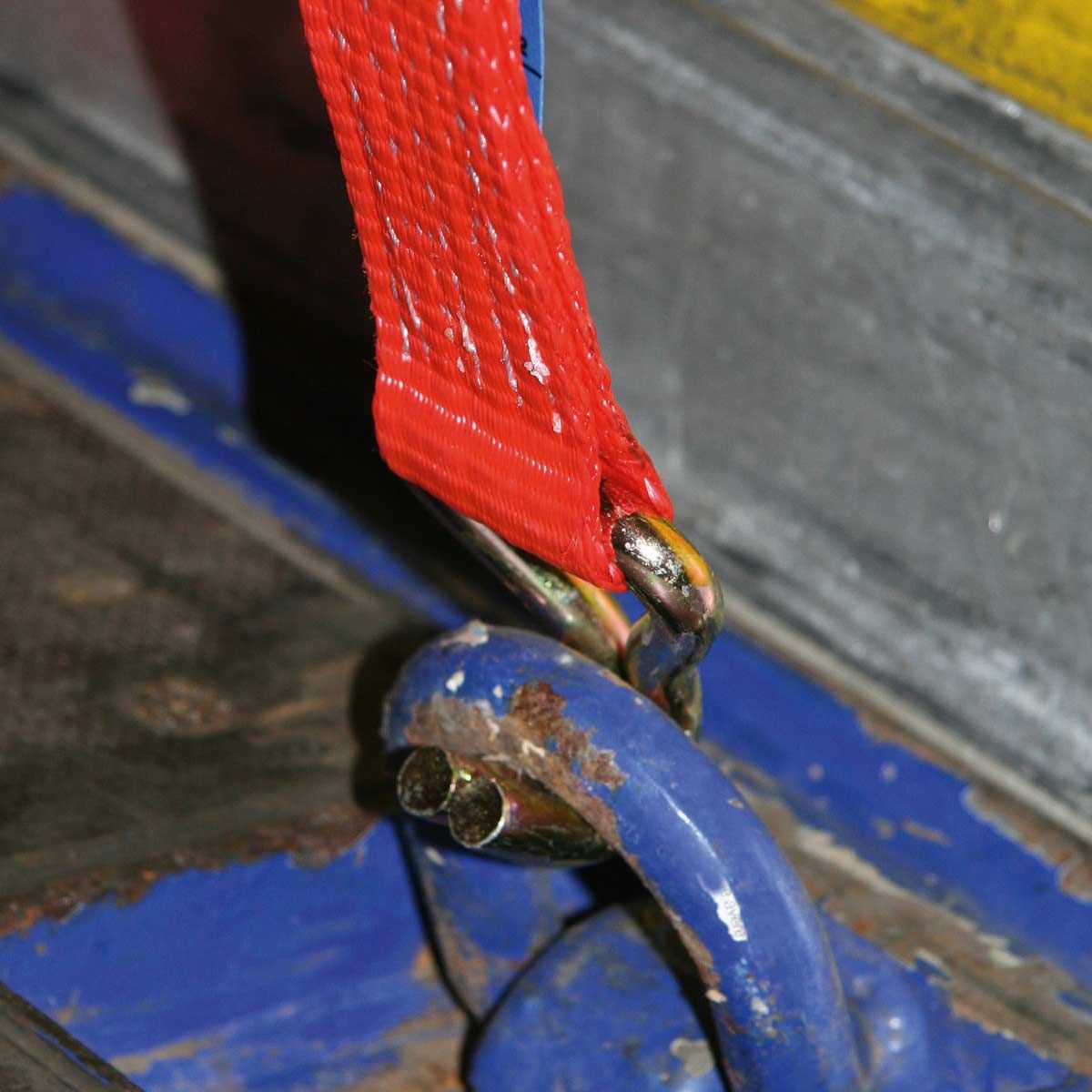 Dieser zweiteilige Ratschen-Zurrgurt sichert zulässige Zugkraft.