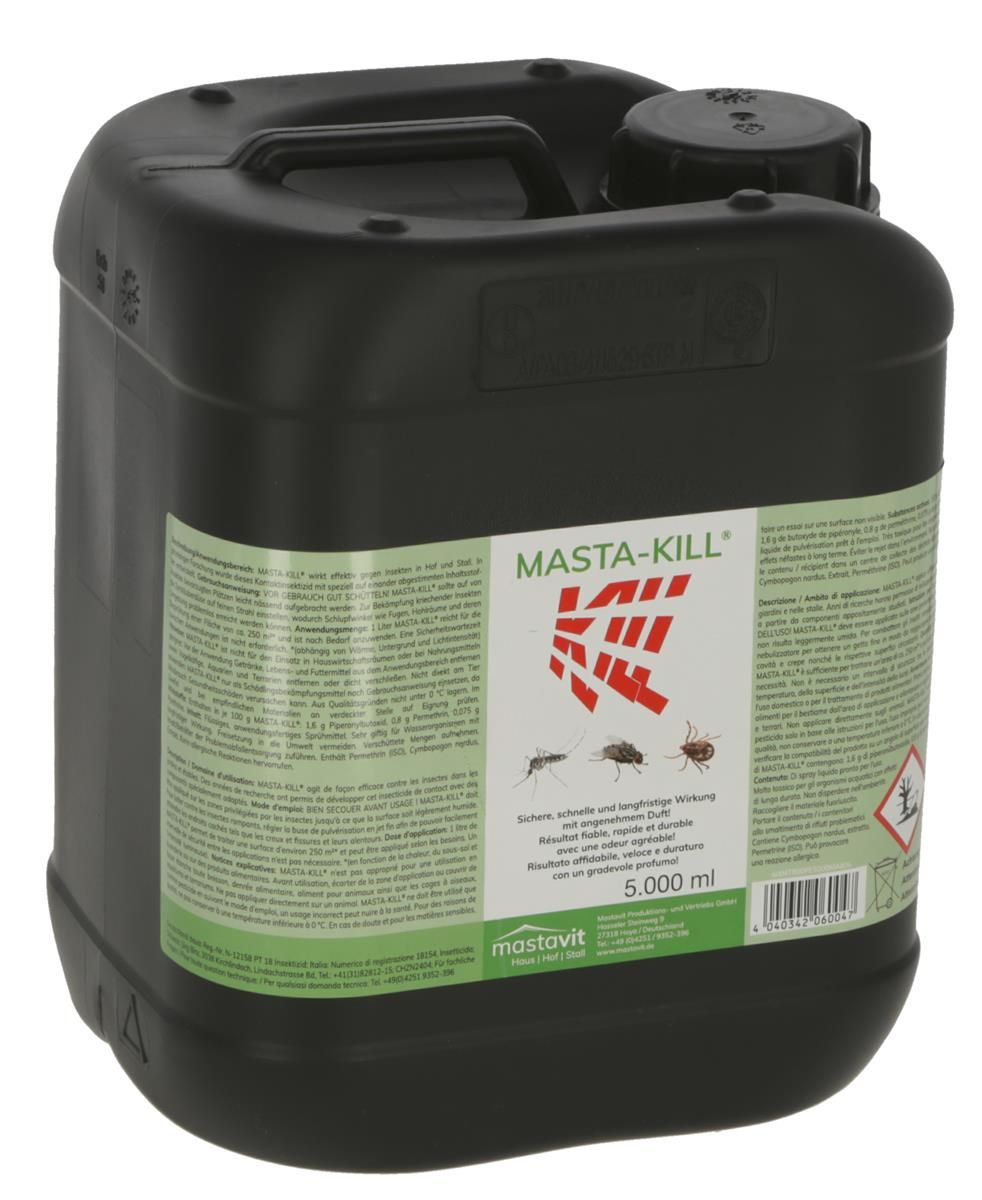 - Enthalten in je 100 g MASTA-KILL: 1,6 g Piperonylbutoxid, 0,8 g Permethrin, 0,075 g Chrysanthemum-cinerariaefolium-Extrakt aus offenen und reifen Tanacetum-cinerariifolium-Blüten, mit Kohlenwasserstoff-Lösungsmittel gewonnen, 0,075 g Tetramethrin.