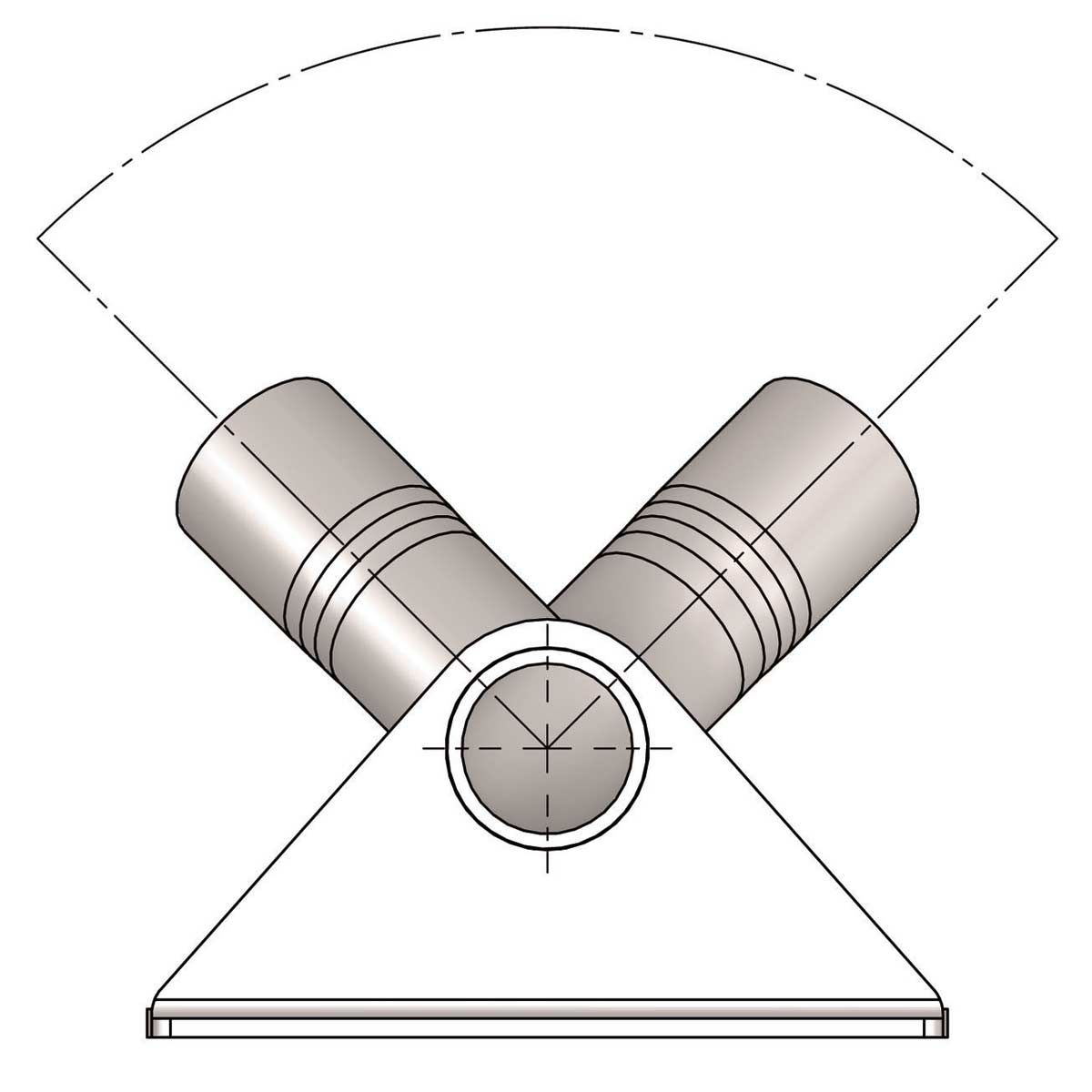 Bei allen Ausführungen mit zwei übereinander liegenden Abgängen stehen die Abgänge im Winkel von 90° zueinander.