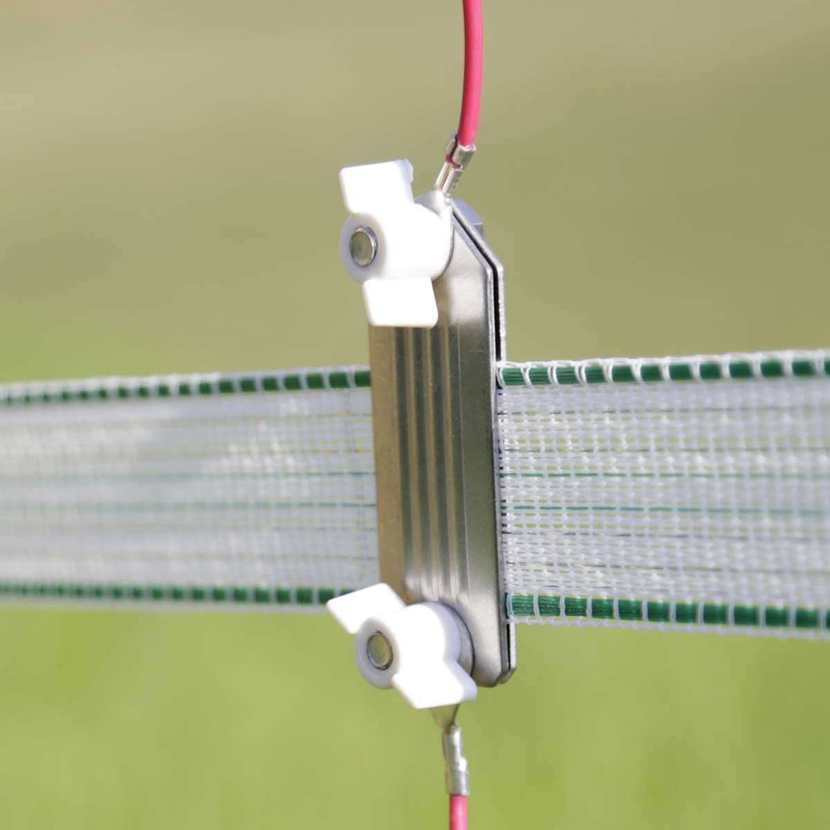 Das Zaunanschlusskabel verbindet das Weidezaungerät mit dem Weidezaundraht. Das Zaunanschlusskabel ist schraubbar und für Bänder bis 40 mm geeignet. Der mechanisch und elektrisch perfekte Anschluss vom Elektrozaungerät zum Band.