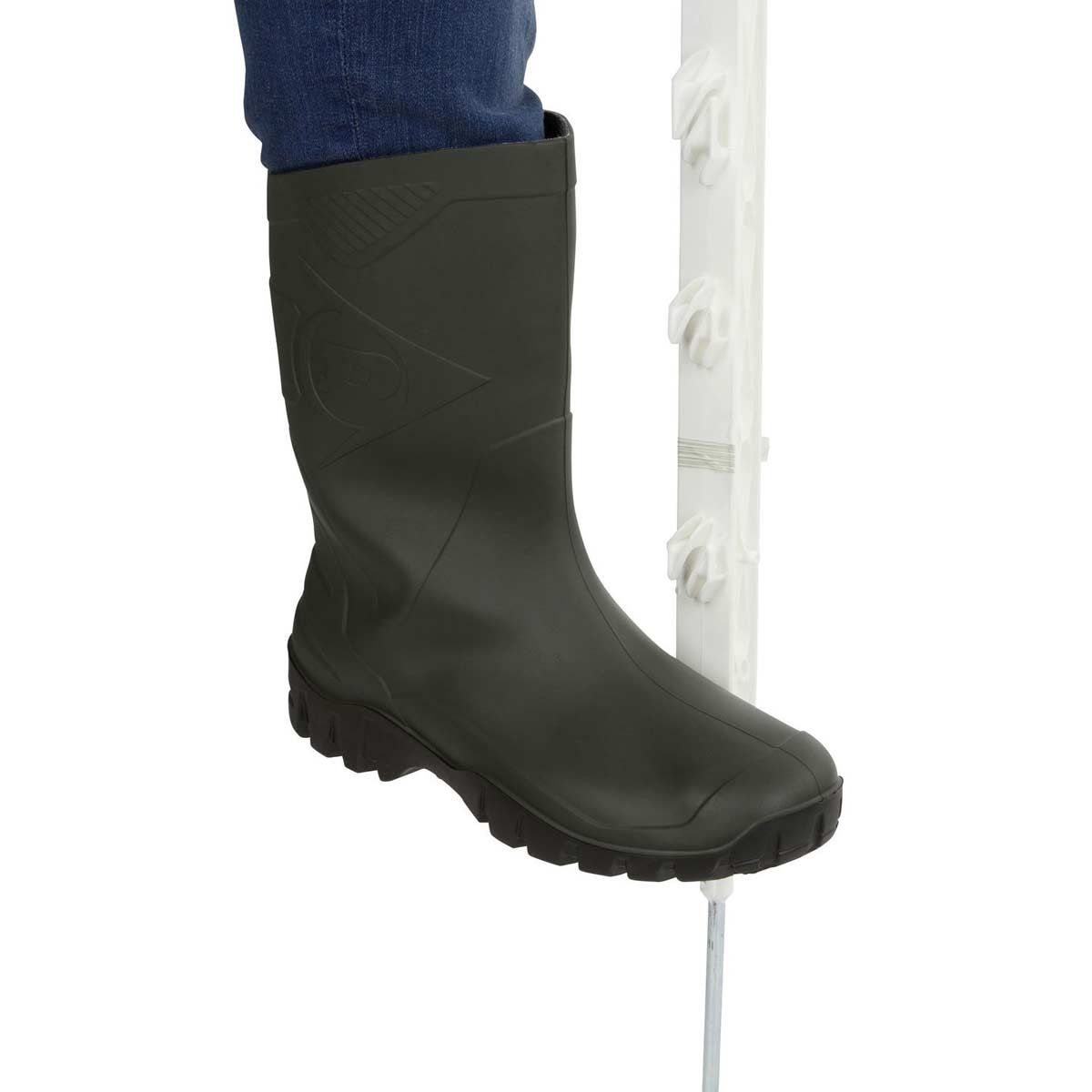 Für ein sicheres Eintreten ist der Kunststoffpfahl mit einem breiten Einzeltritt ausgestattet. Zusätzlich sorgt ein verzinkter Bodennagel mit einer Länge von 18cm für zusätzliche Stabilität.