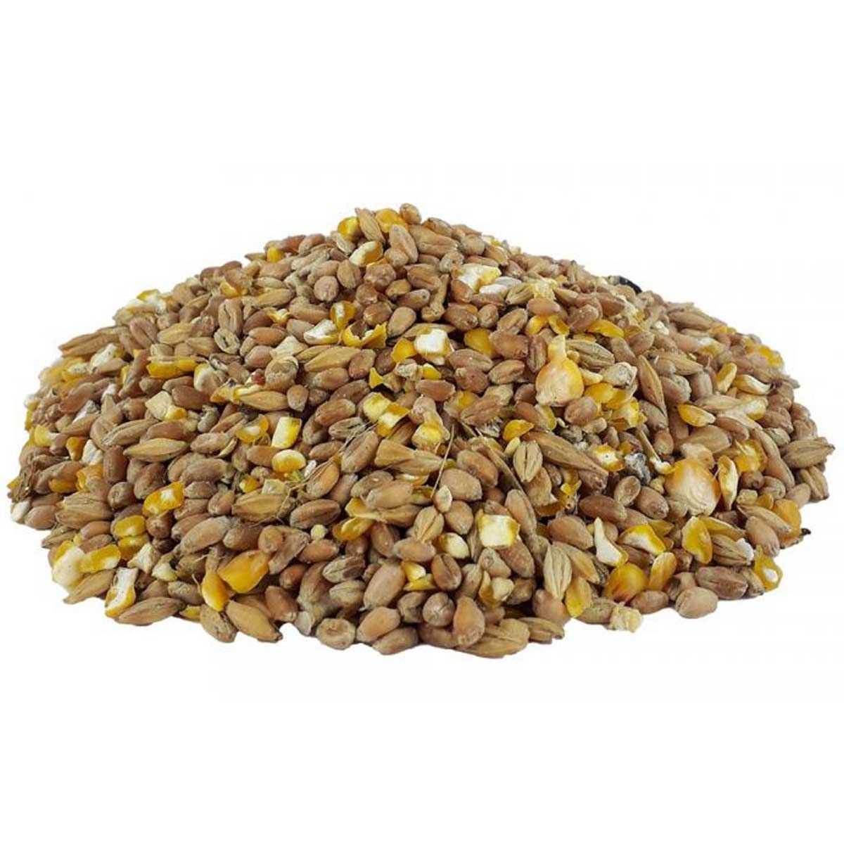 Zusammensetzung: 41,0 % Mais geschrotet grob; 41,0 % Weizen; 15,8 % Gerste; 2,0 % Muschelgrit; 0,2 % Sonnenblumenöl