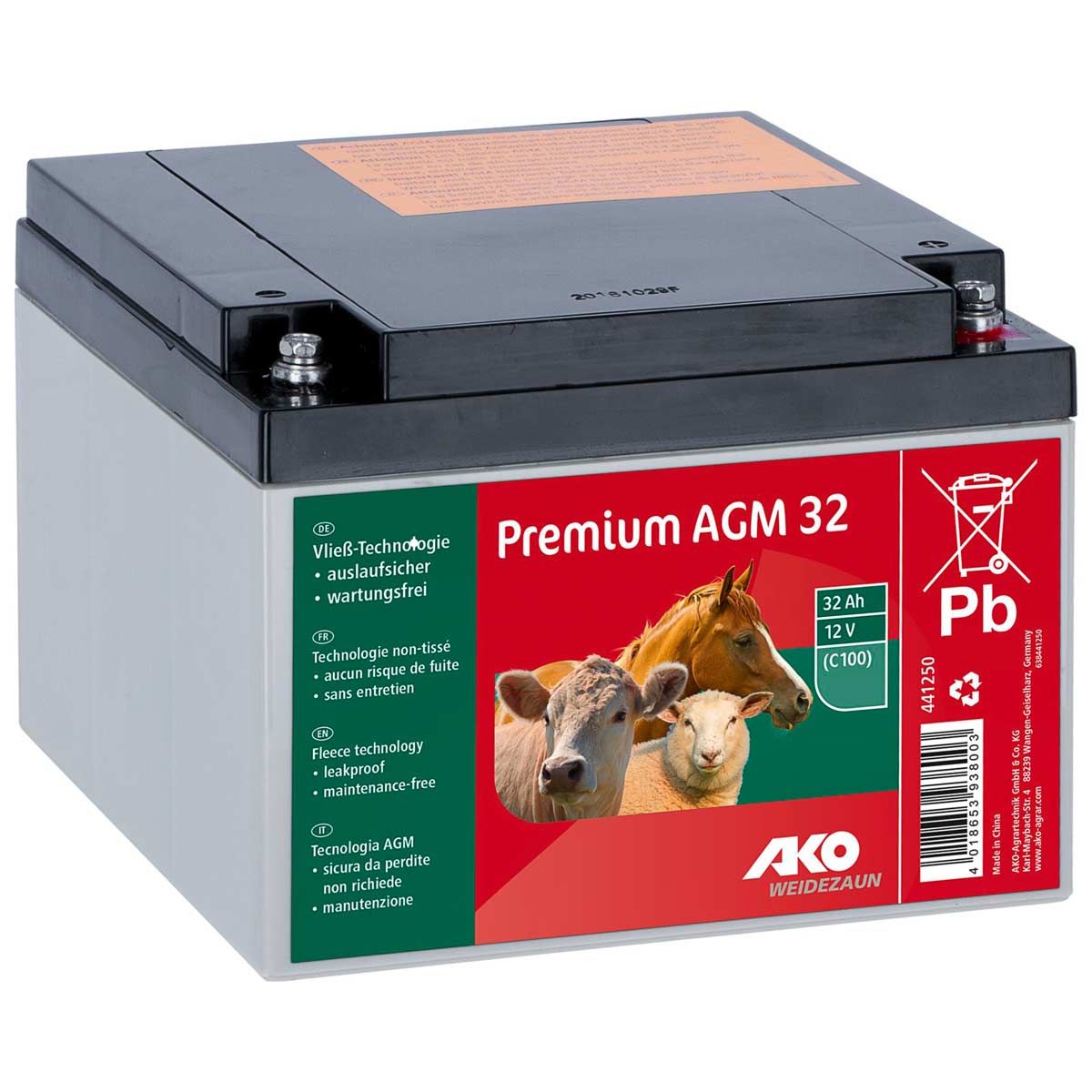 AGM Premium Akku Weidezaunbatterie 12V 32 Ah