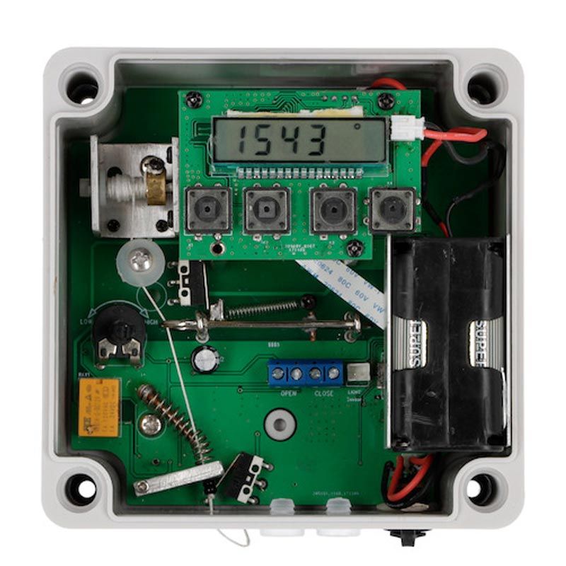 - 3 Funktionen zum Öffnen: Steuerung mit Zeitschaltuhr, Lichtsensor oder manuell