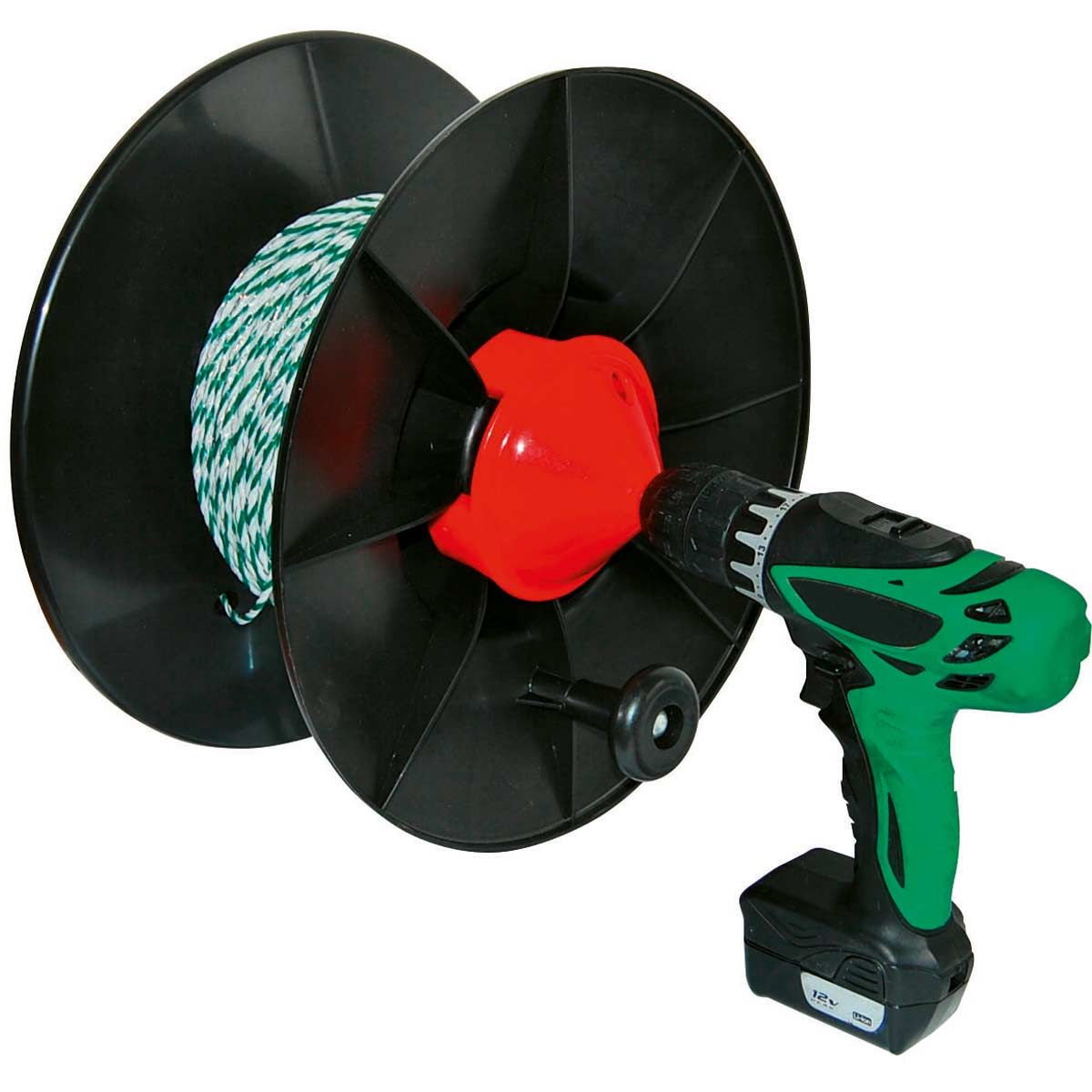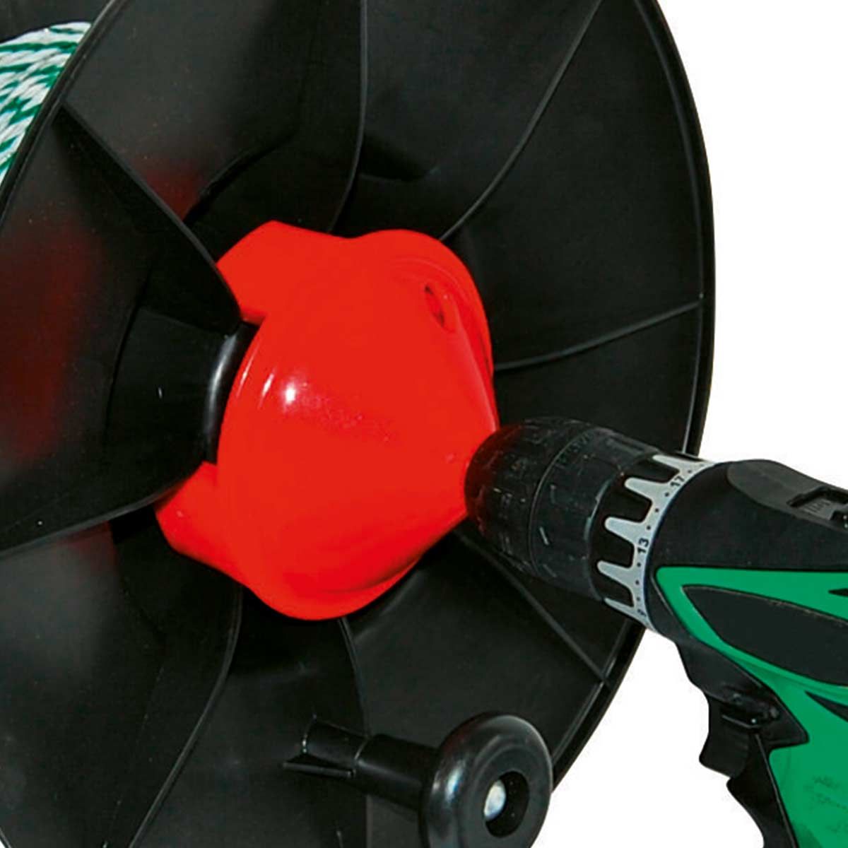 Der Adapter erleichtert das Aufrollen von Leitermaterial auf Ihre Haspel um ein vielfaches und ist somit ein praktischer Helfer beim Zaunaufbau und -abbau.