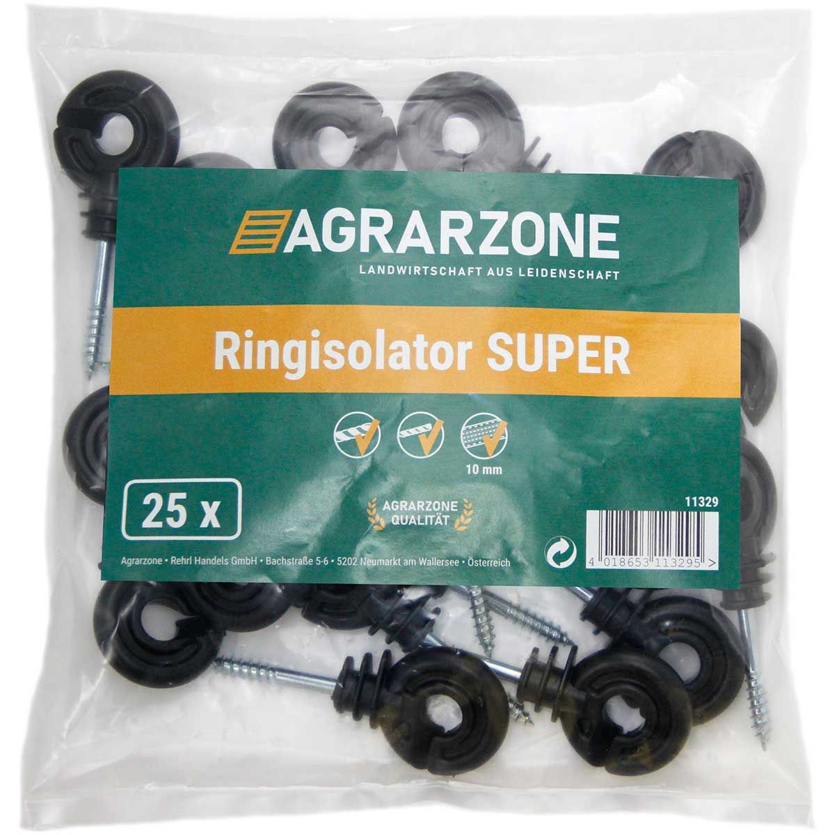Der Agrarzone Ringisolator ist seit vielen Jahren in der Praxis bewährt. Durch seine vielseitige Einsetzweise ist er ein echtes Multitalent. Der hochwertige Spezialkunststoff des Weidezaunisolators zeichnet sich durch Schlag- und Spannungsfestigkeit aus.