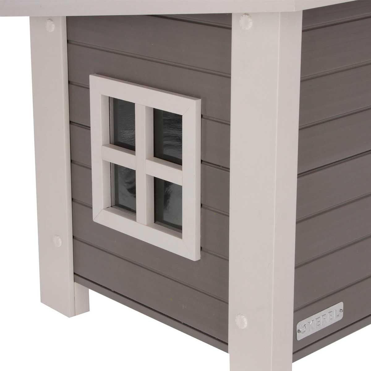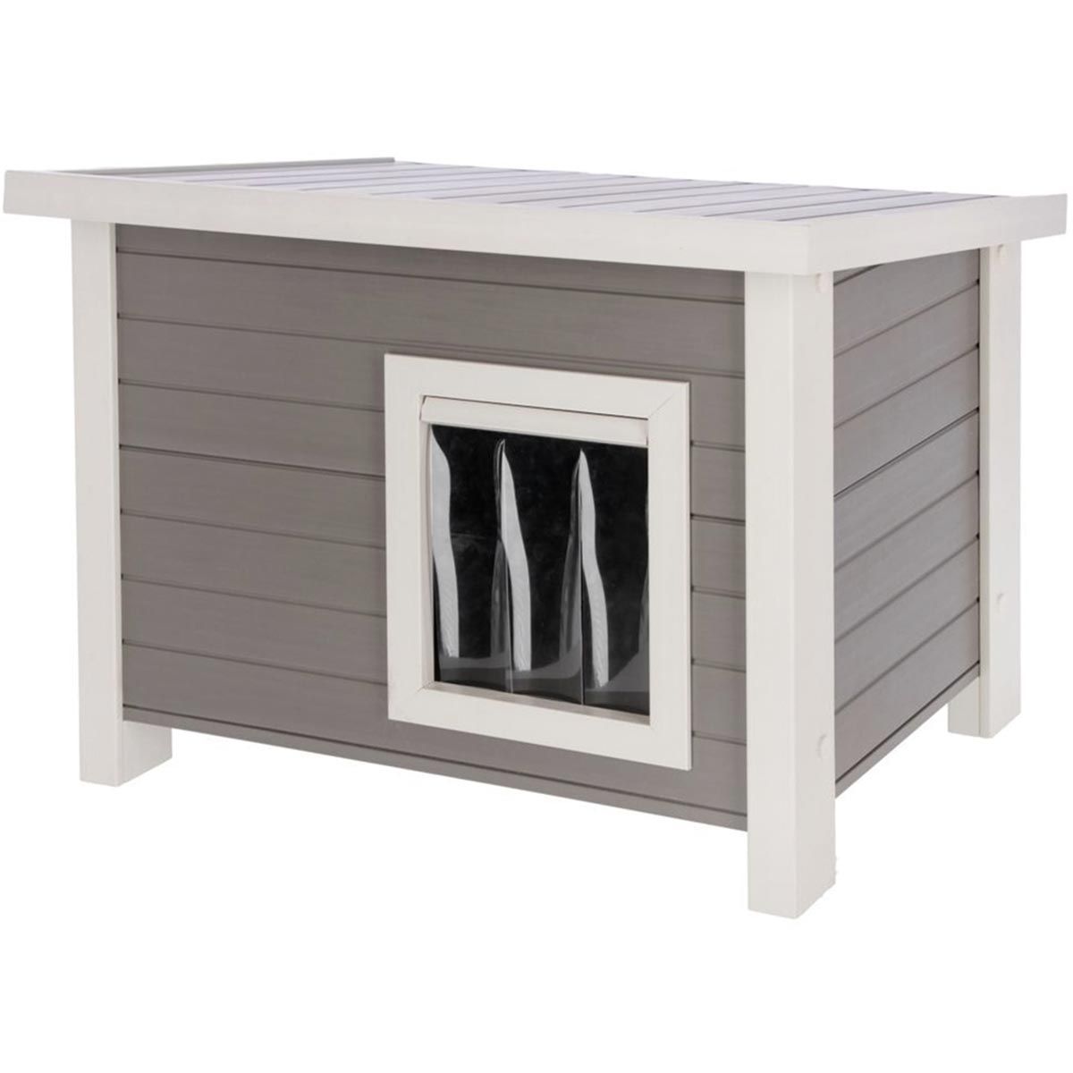 Das Katzenhaus Eli aus Eco-Kunststoff ist die ideale wetterfeste Unterkunft für Ihre Katze im Freien. Mit einer Materialzusammensetzung von 60% Kunststoff und 40% Holz ist das Haus äußerst robust und langlebig. Das aufklappbare Dach mit Fixierung ermöglicht eine einfache Reinigung und Pflege, während die Tür mit Lamellen Ihre Katze vor Wind und Kälte schützt. Für ausreichend Licht im Innenraum sorgen die praktischen Seitenfenster.
