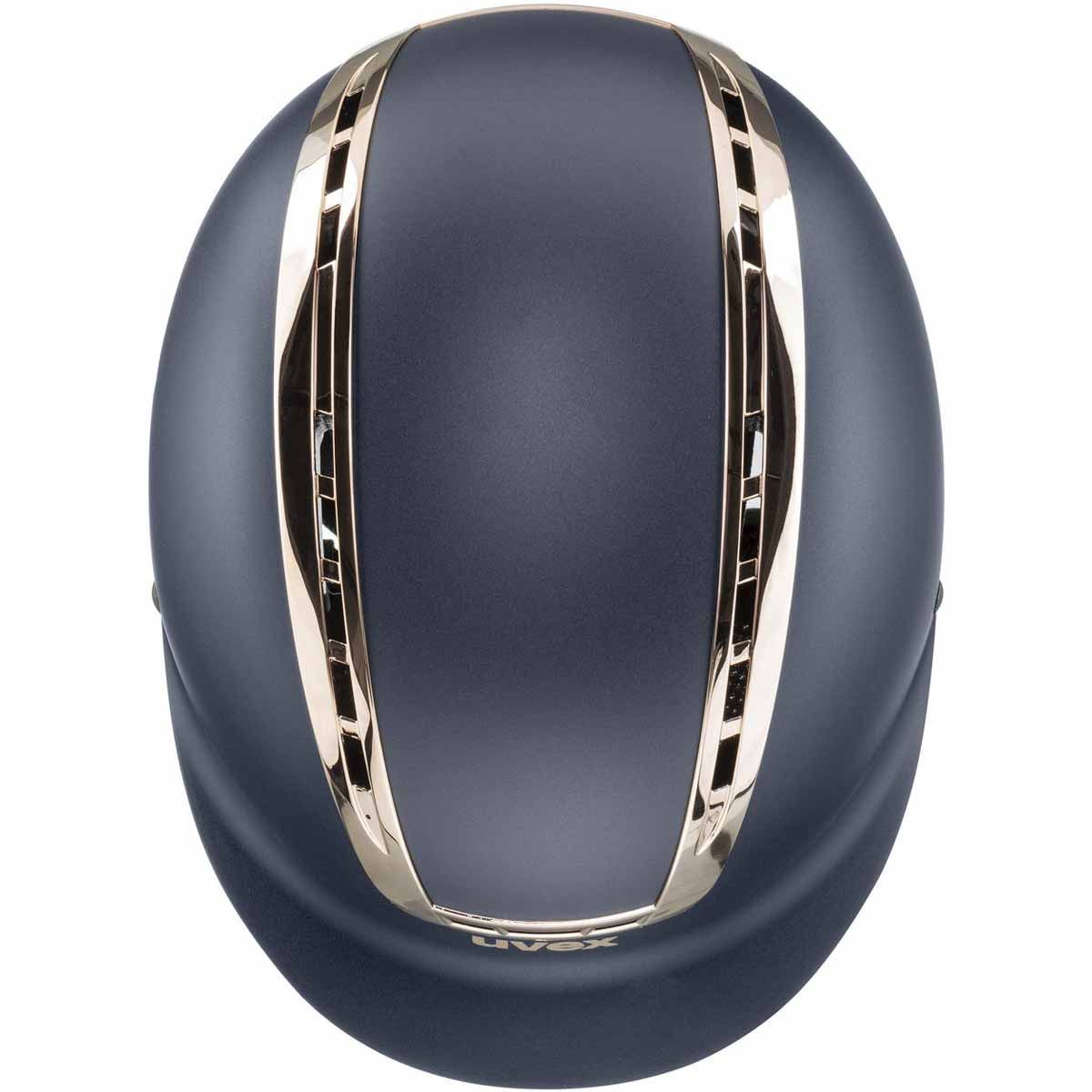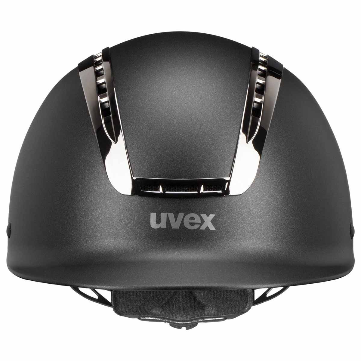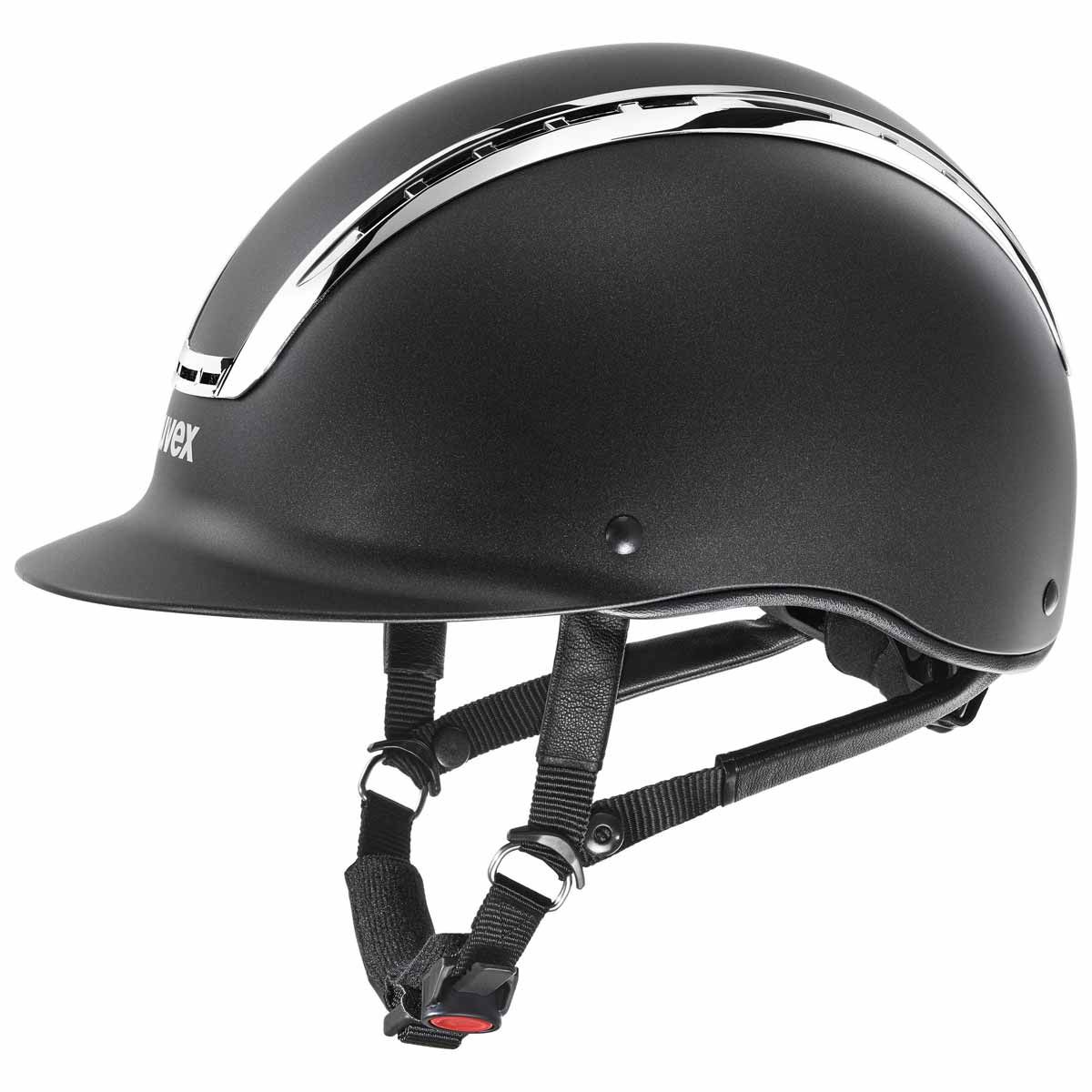Der elegante Reithelm der Marke uvex schafft mit seinem Chrom-Rahmen die pferdekte Mischung aus Sportlichkeit und cleaner Eleganz.