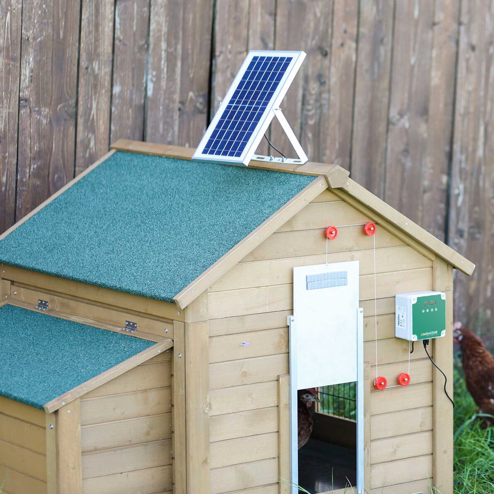 - Automatische, selbst öffnende Hühnertüre
