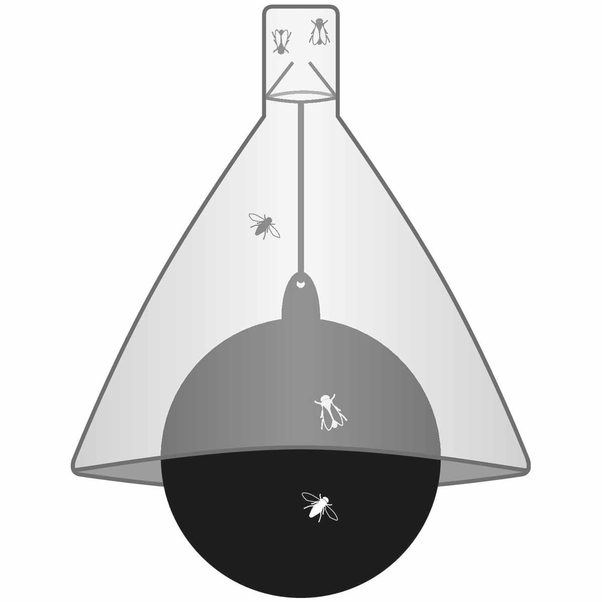 Der dunkle Ball in der Mitte der Falle symbolisiert das Hinterteil eines Pferdes. Bremsen können nur Hell- und Dunkelkontraste ähnlich einer Wärmebildkamera wahrnehmen. Zur Steigerung der Attraktiviät ist als Abgrenzung zum vermeintlichen Pferdehintern