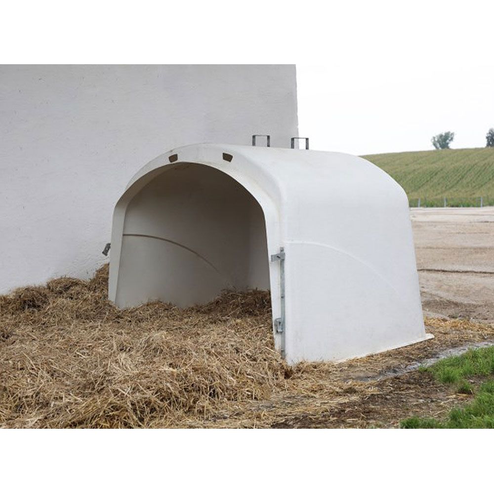 Das Gruppenkälberiglu Premium XL ist besonders robust. DieGroßraumkälberhütte ist aus glasfaserverstärktem Kunststoff hergestellt und bietet bis zu 5 Kälbern Platz. Durch das Schiebefenster auf der Rückseite sind die Tierkontrolle und auch das Befüllen der (optionalen) Heuraufe einfach zu Handhaben. Das CalfHouse Premium XL ist durch zusätzliche Verstärkungsrahmen besonders stabil und robust.