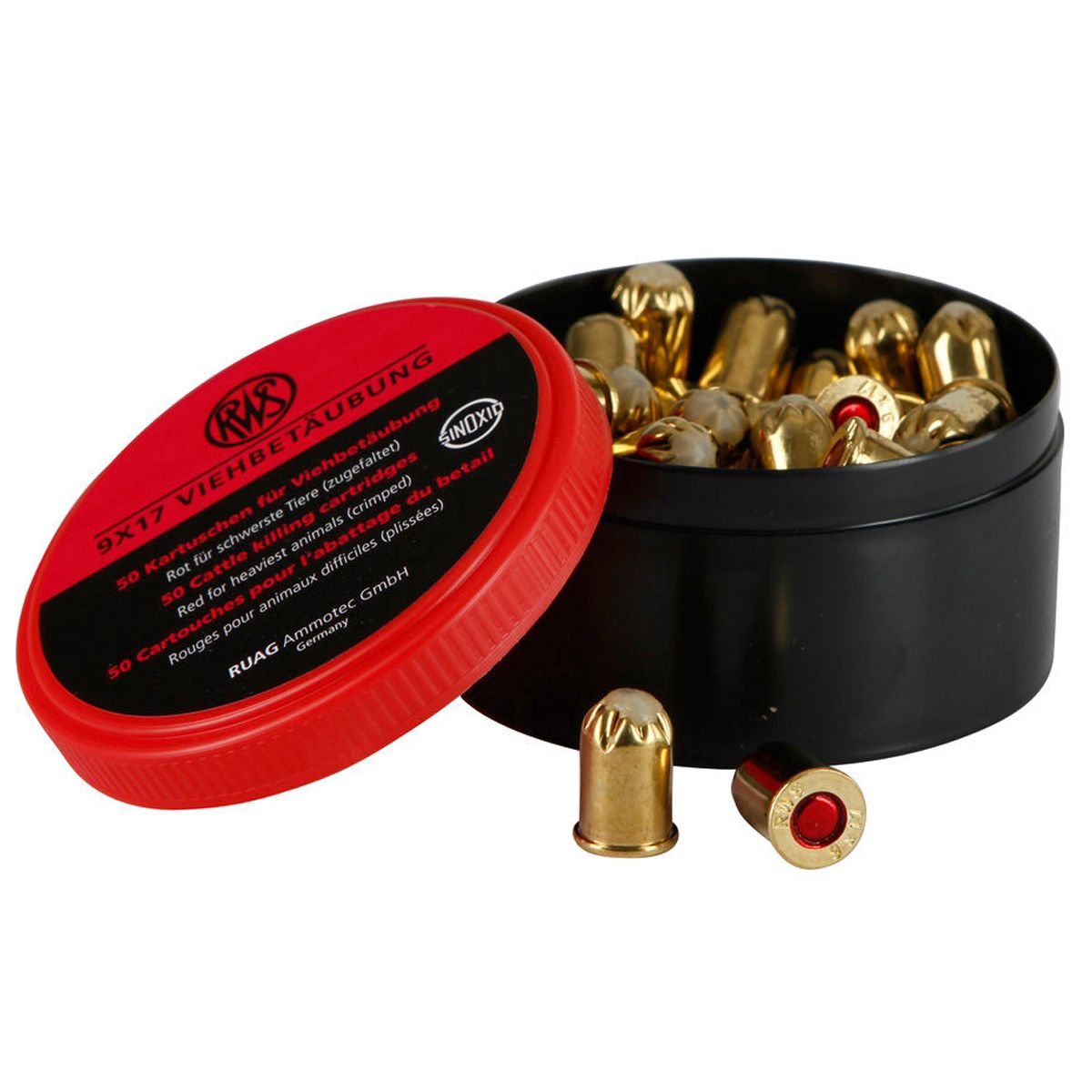 50x RWS Patronen Spezialkartuschen für Viehbetäubungsapparat 9x17 rot