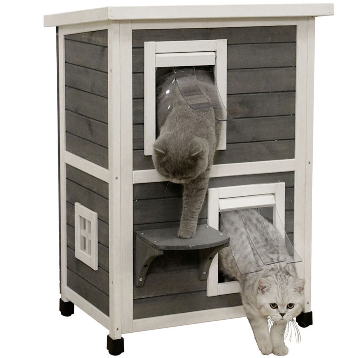 Das große Katzenhaus bietet für mehrere Katzen Platz und ist für Innen- und Außennutzung geeignet.
